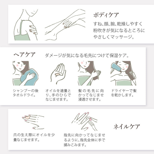 デリケートゾーンのケアだけでなく、ボディオイルとして全身の保湿ケアにもおすすめです。