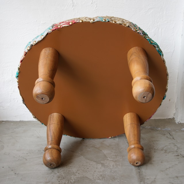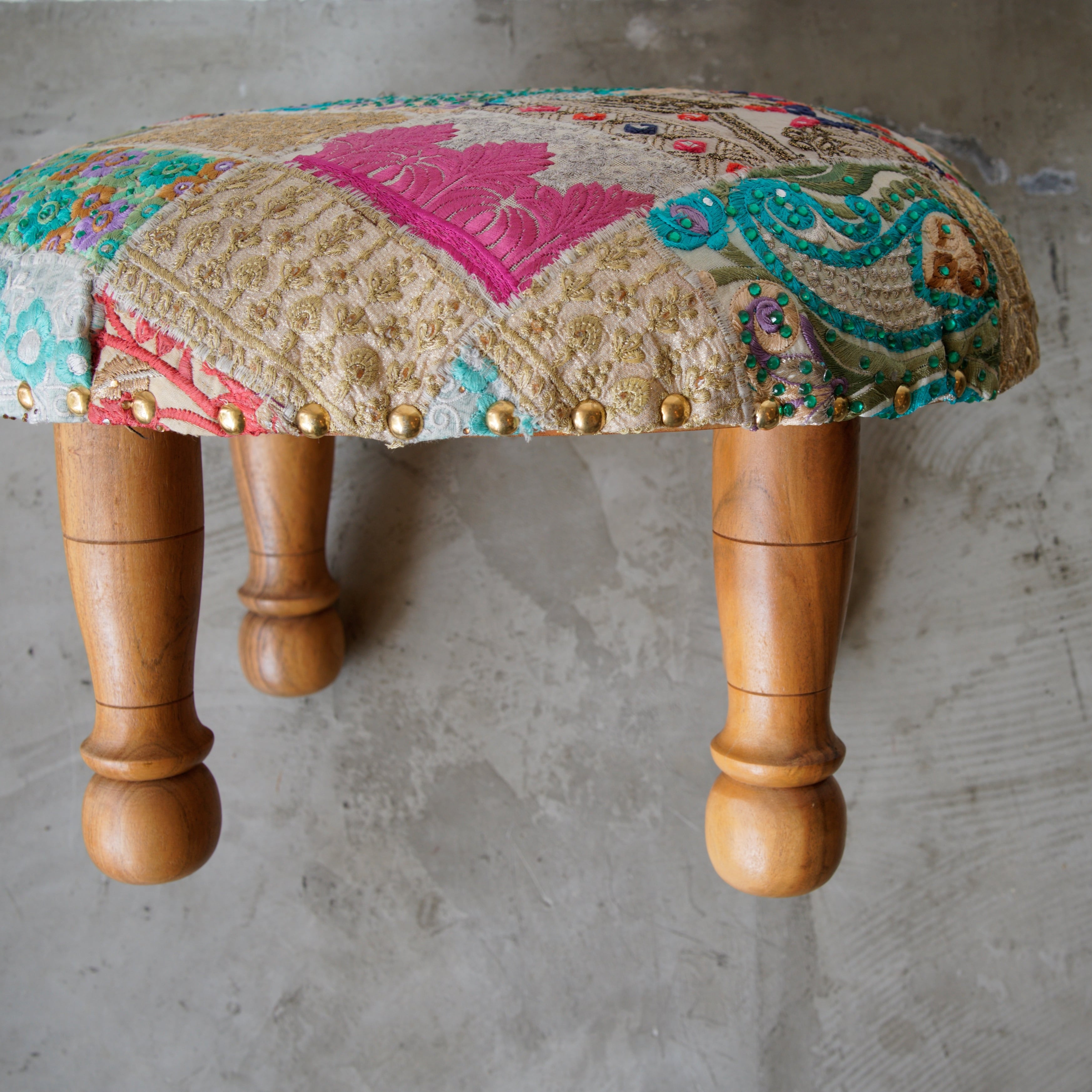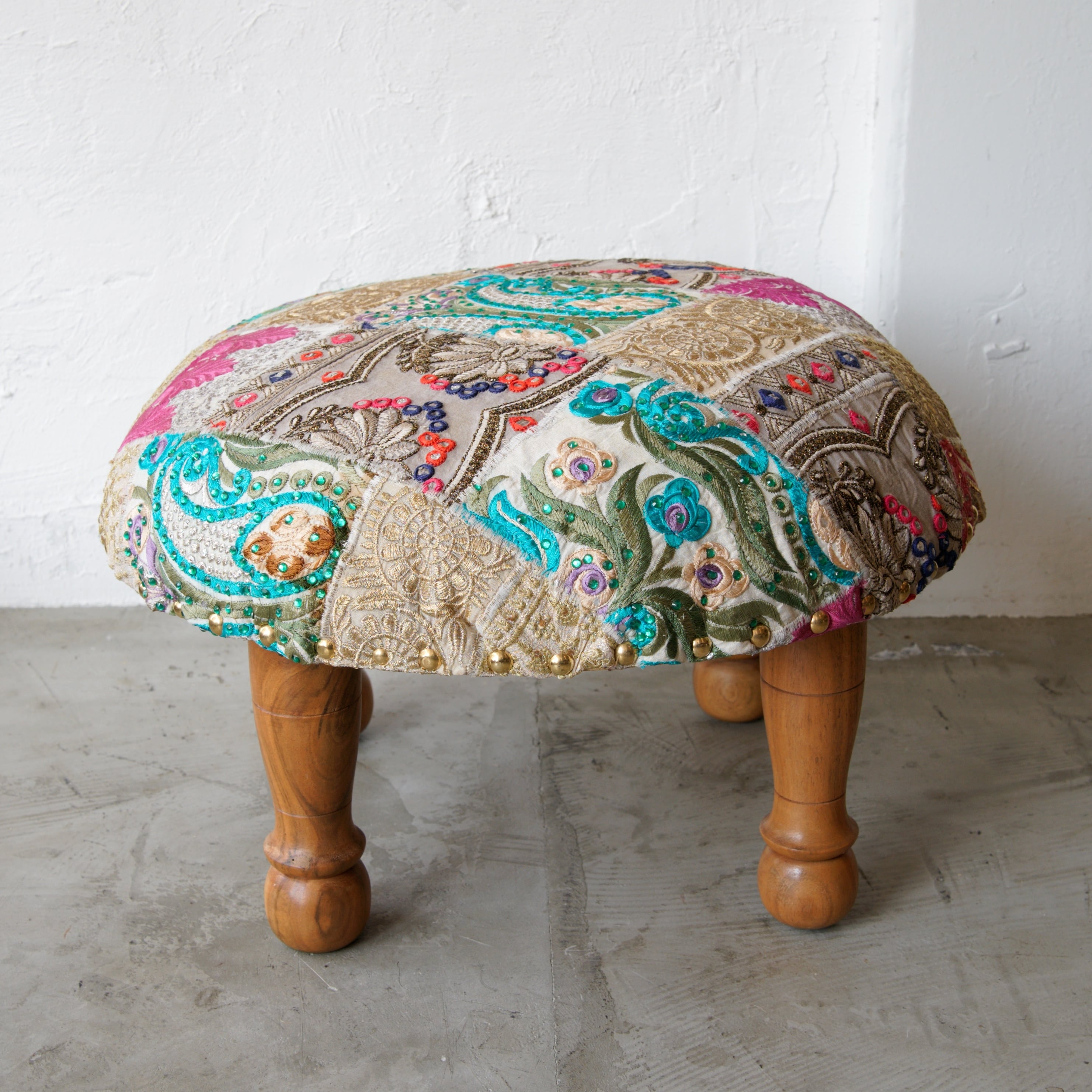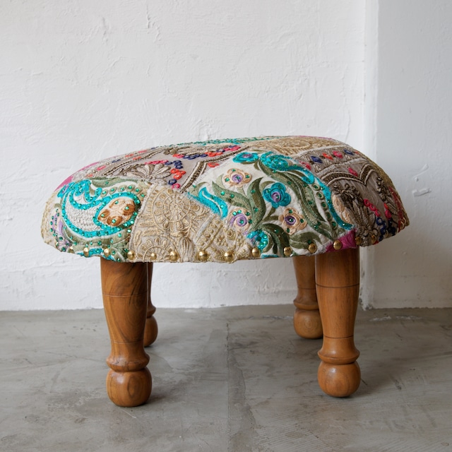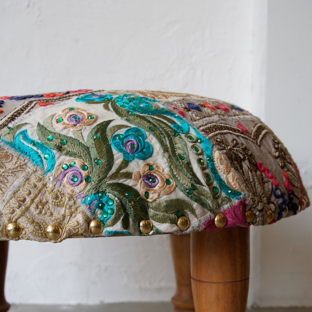 インドの伝統的な刺繍布「カンバディア」を贅沢に使った、脚付きスツール。