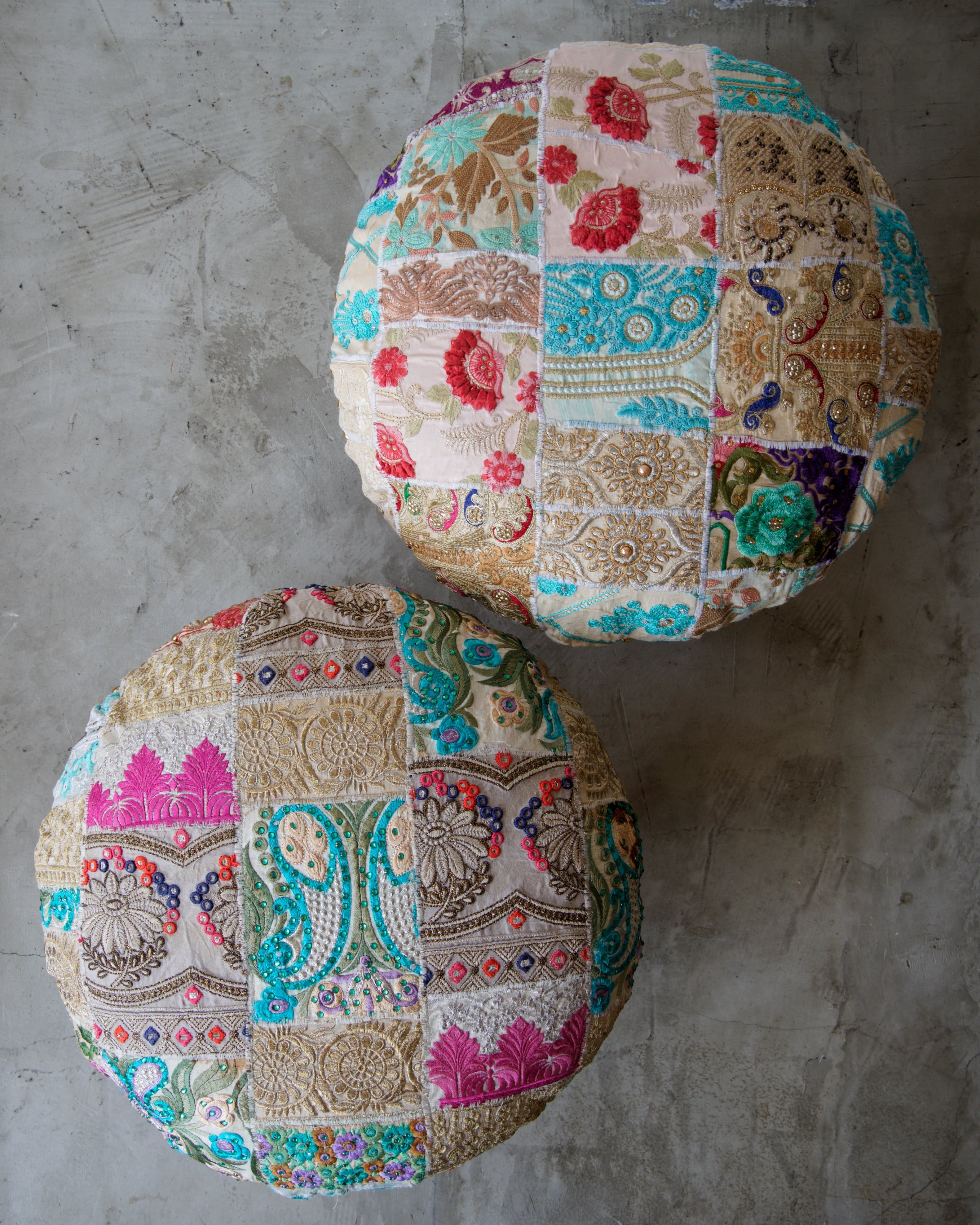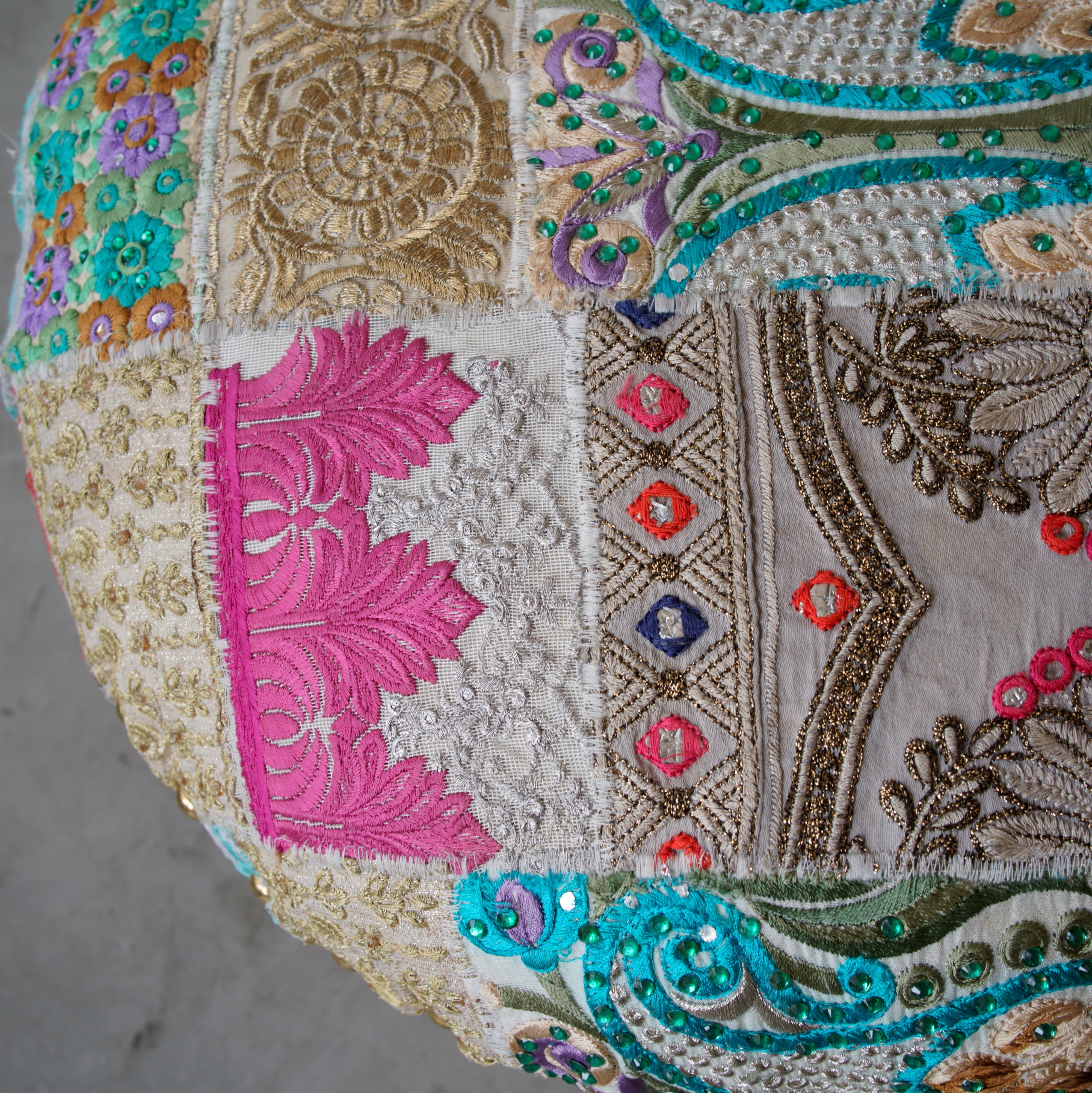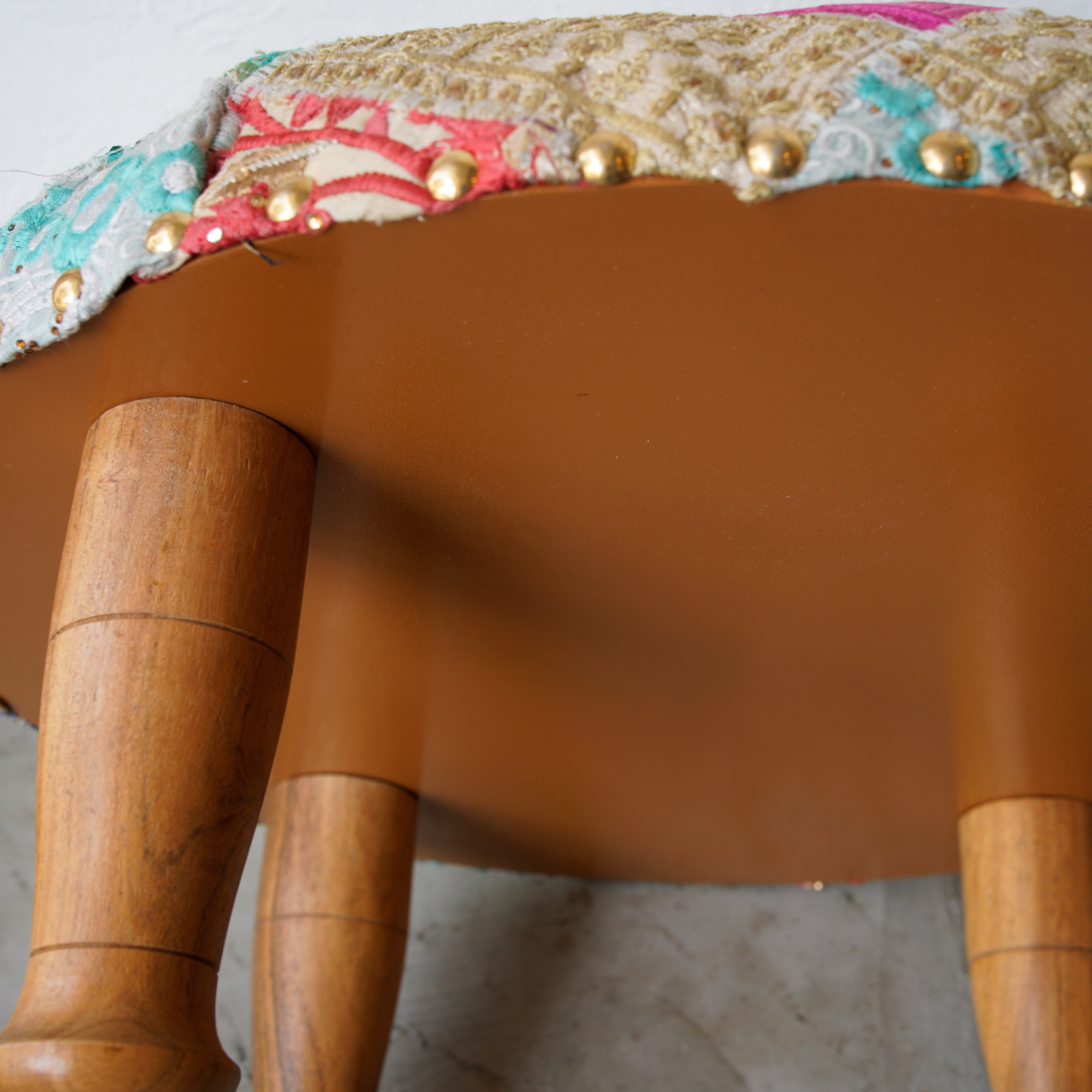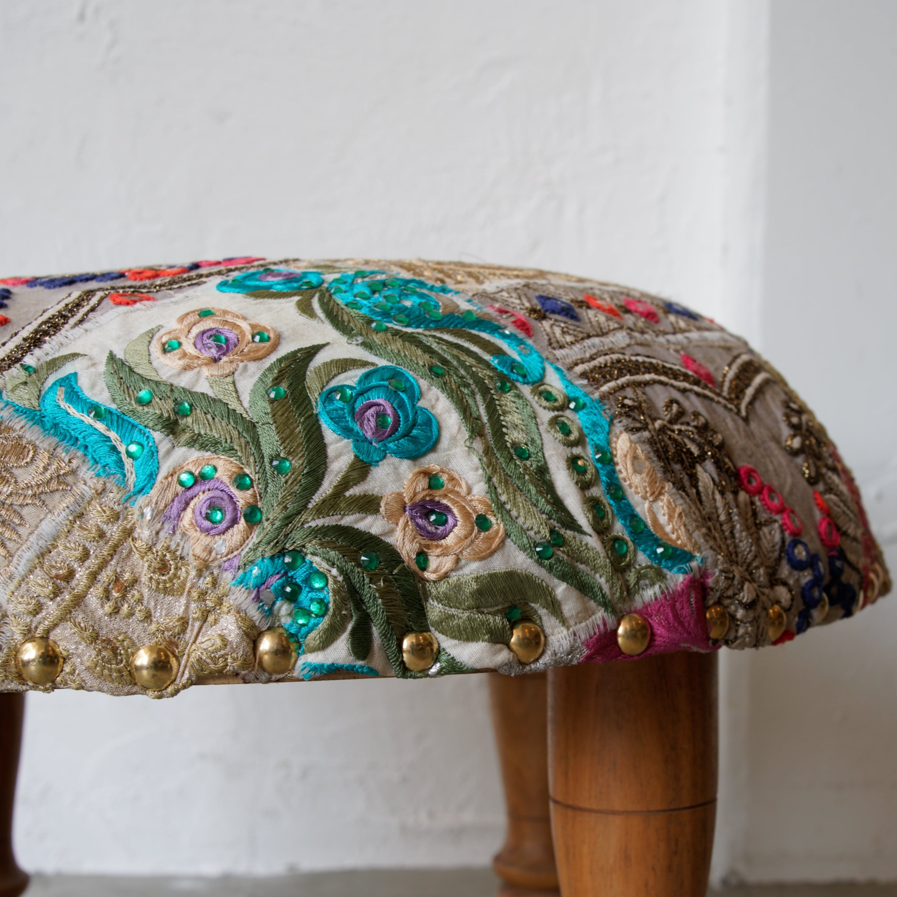 インドの伝統的な刺繍布「カンバディア」を贅沢に使った、脚付きスツール。