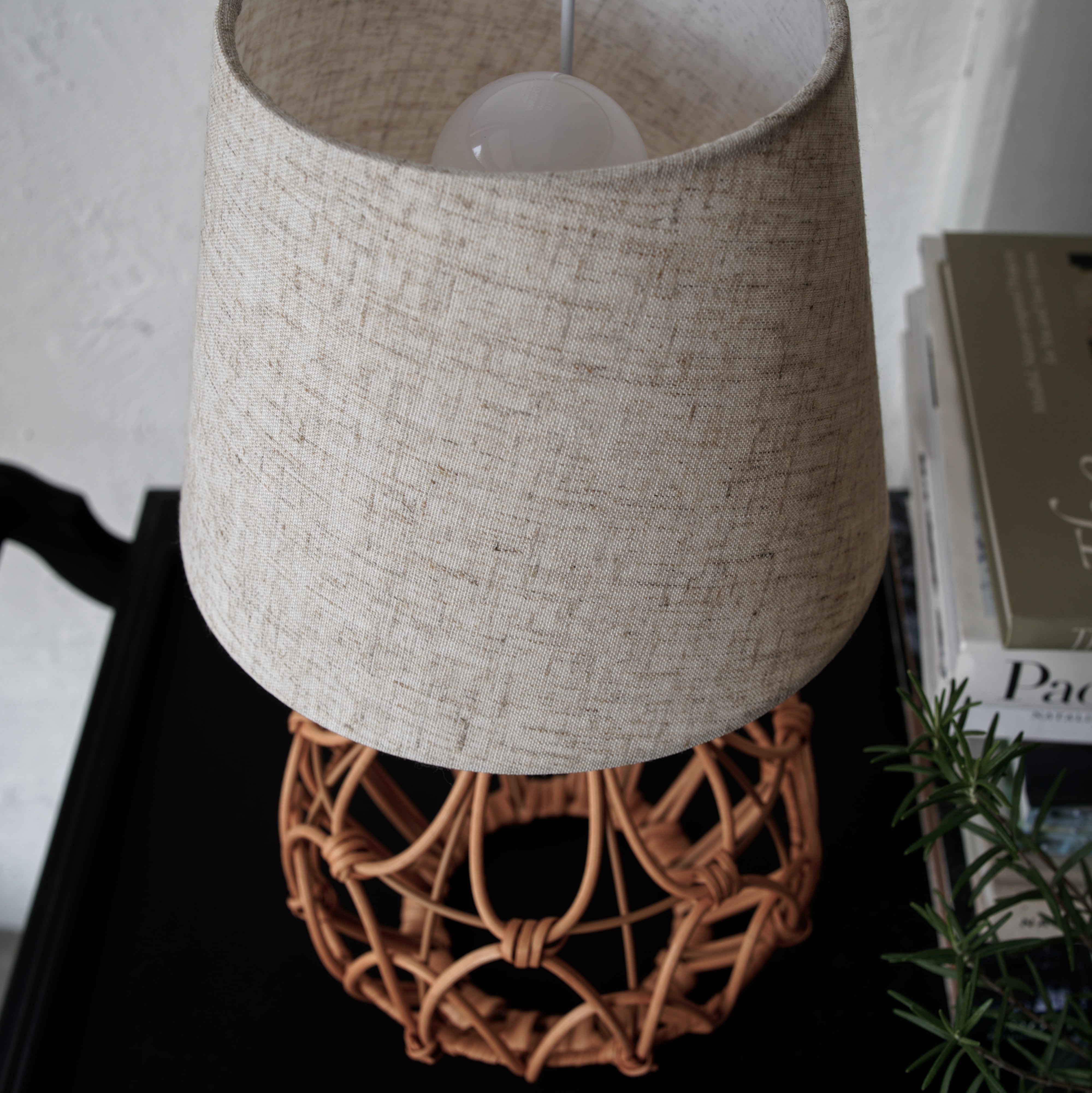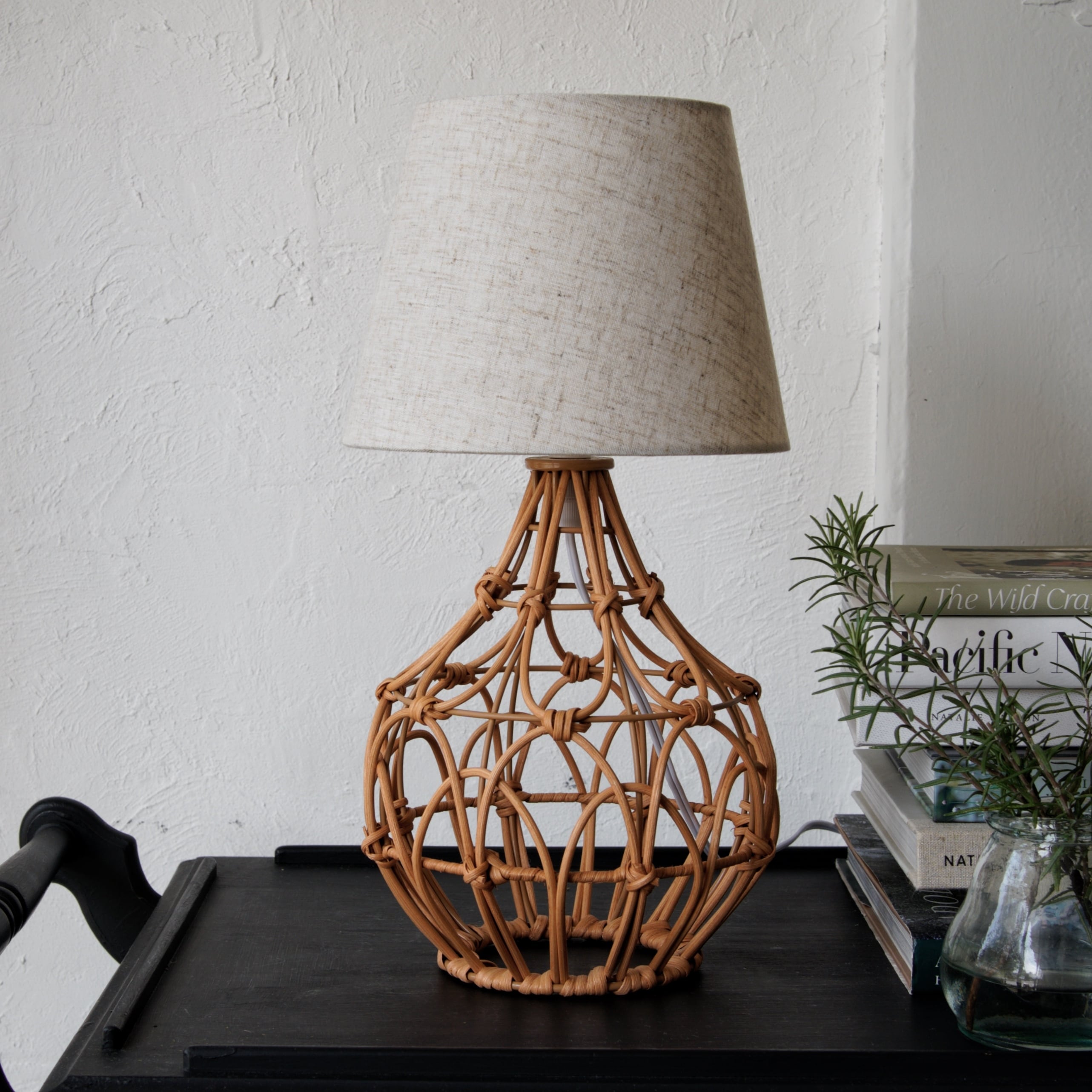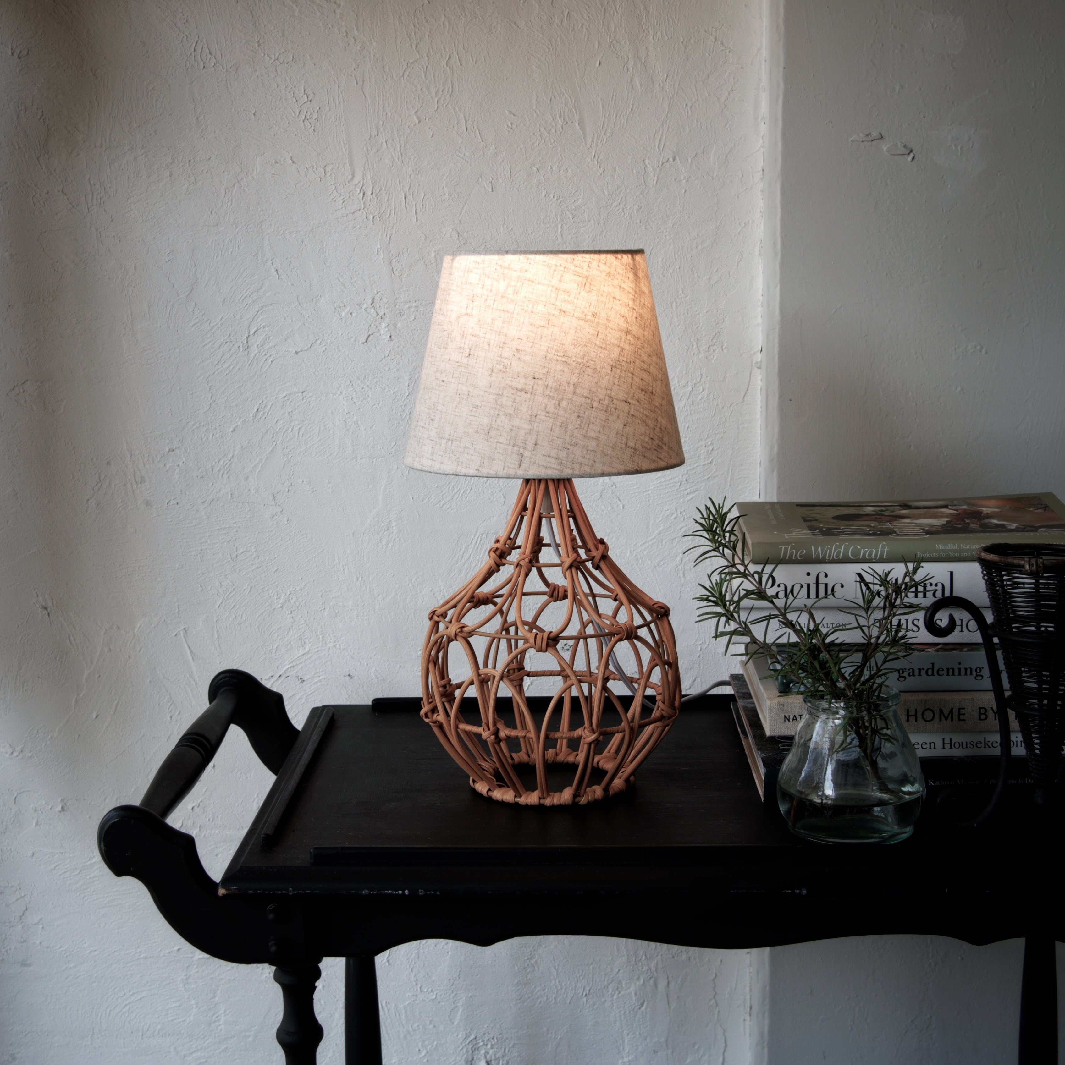 自然素材の温もりを感じる、ラタンのテーブルランプ。
