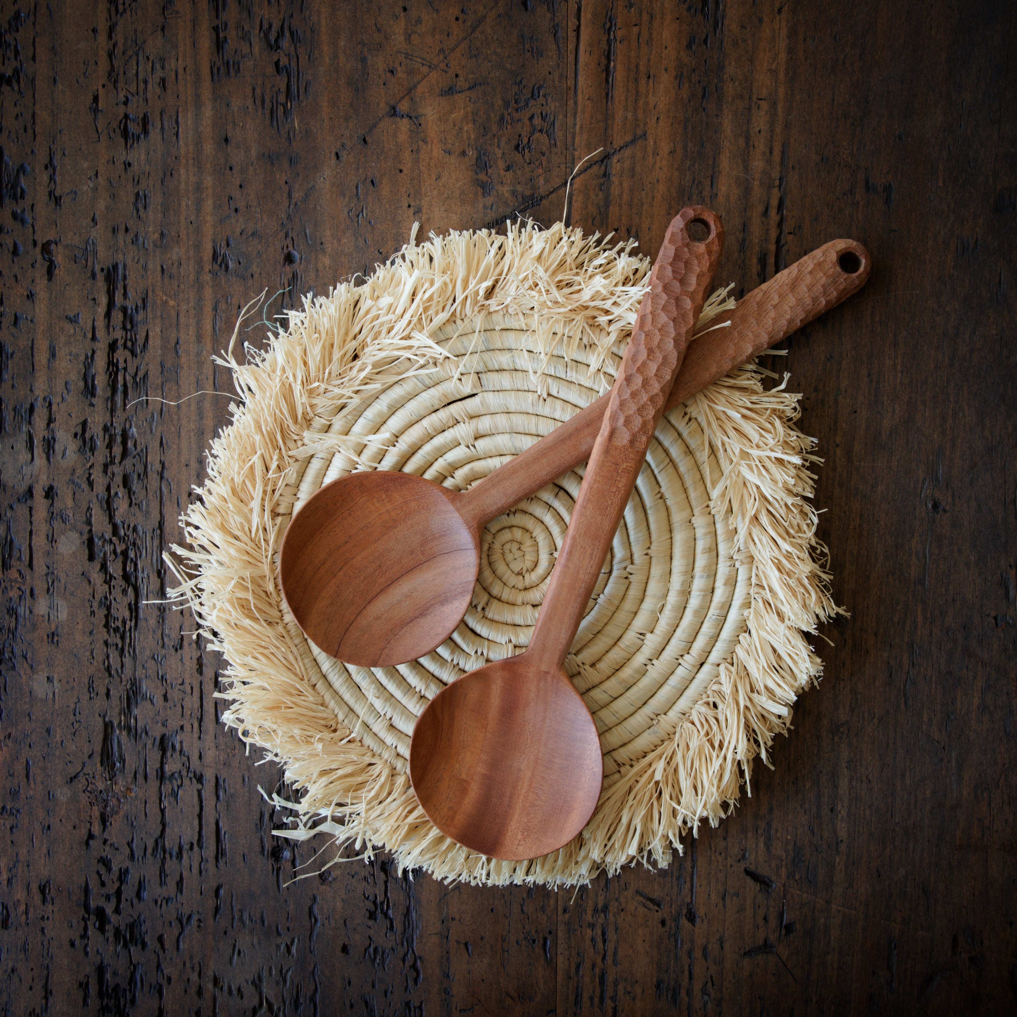 「ミラクルニーム」とも呼ばれるとても薬効の高い木で作られた食器は、ナチュラルな風合いで食卓に温かみをそえてくれます。