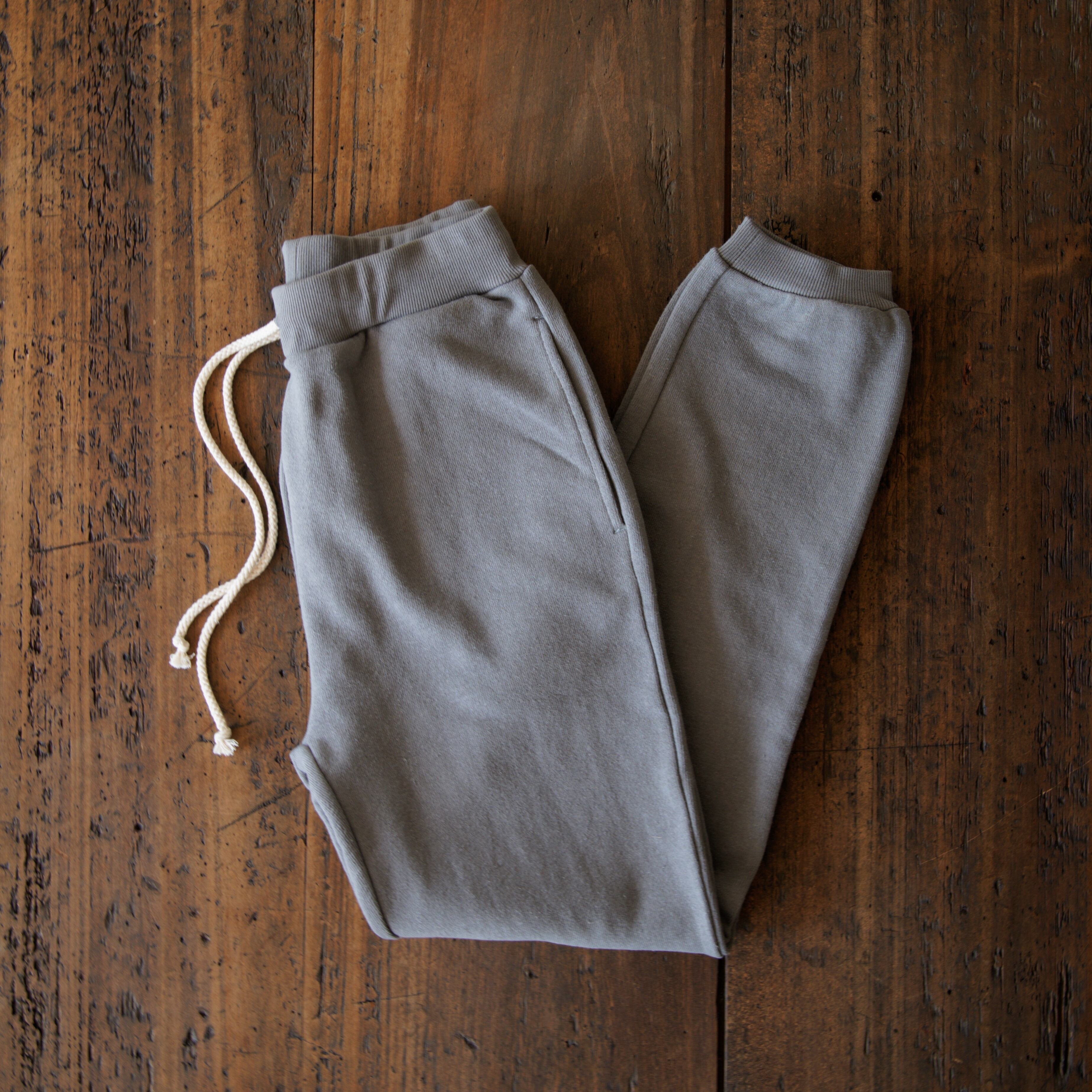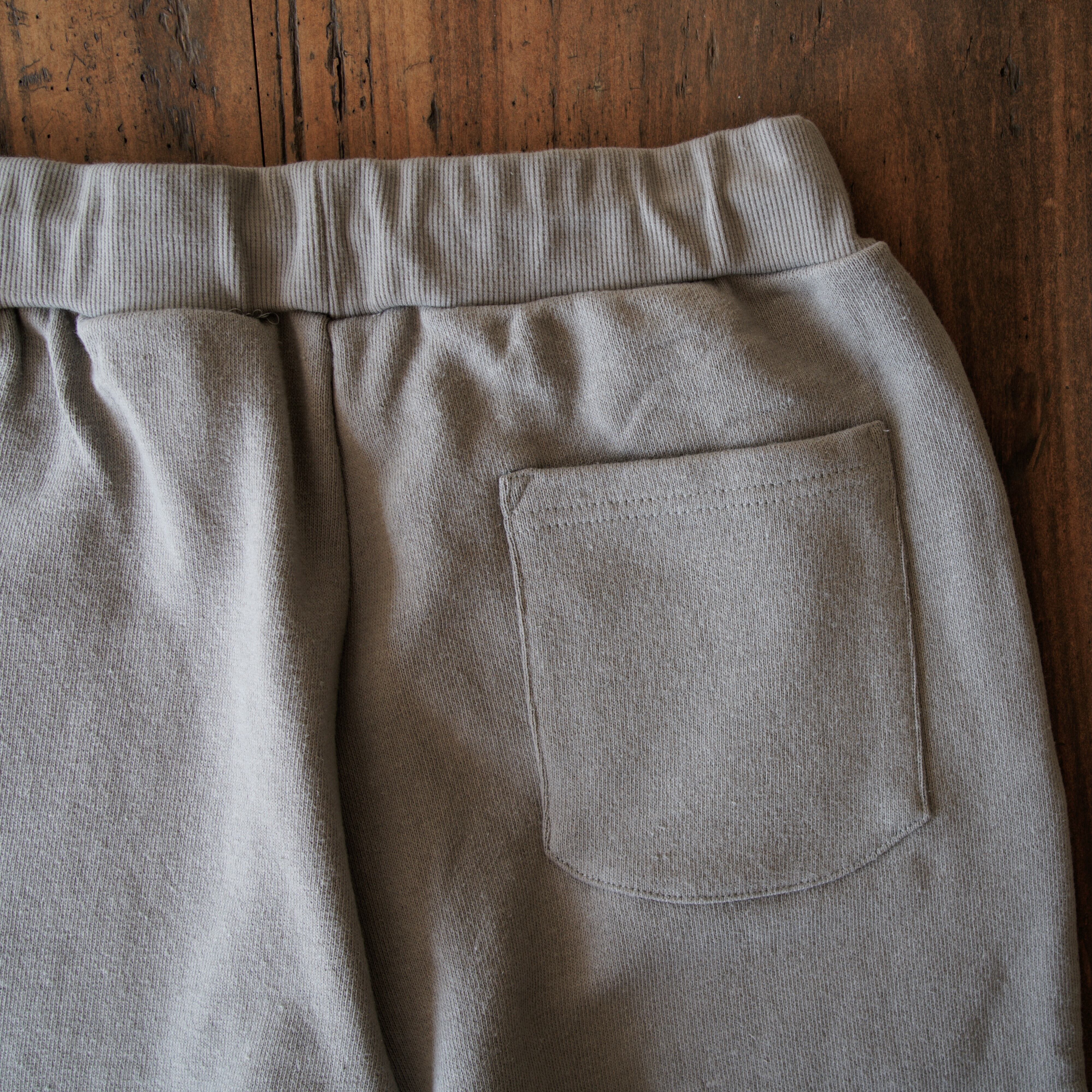 ヘンプ55%・オーガニックコットン45%のオリジナル裏毛生地で仕立てた、テリーベーシックスウェットパンツ。