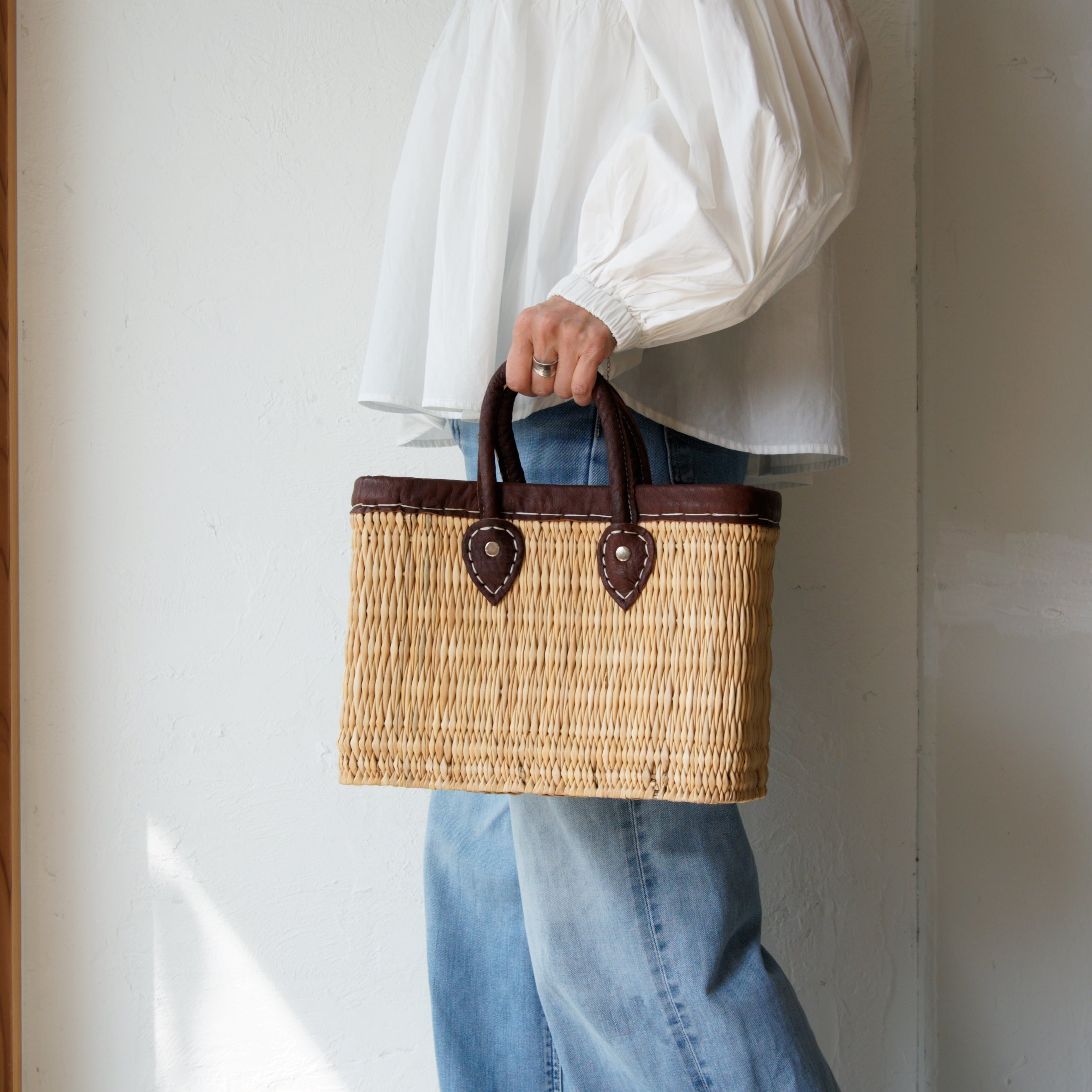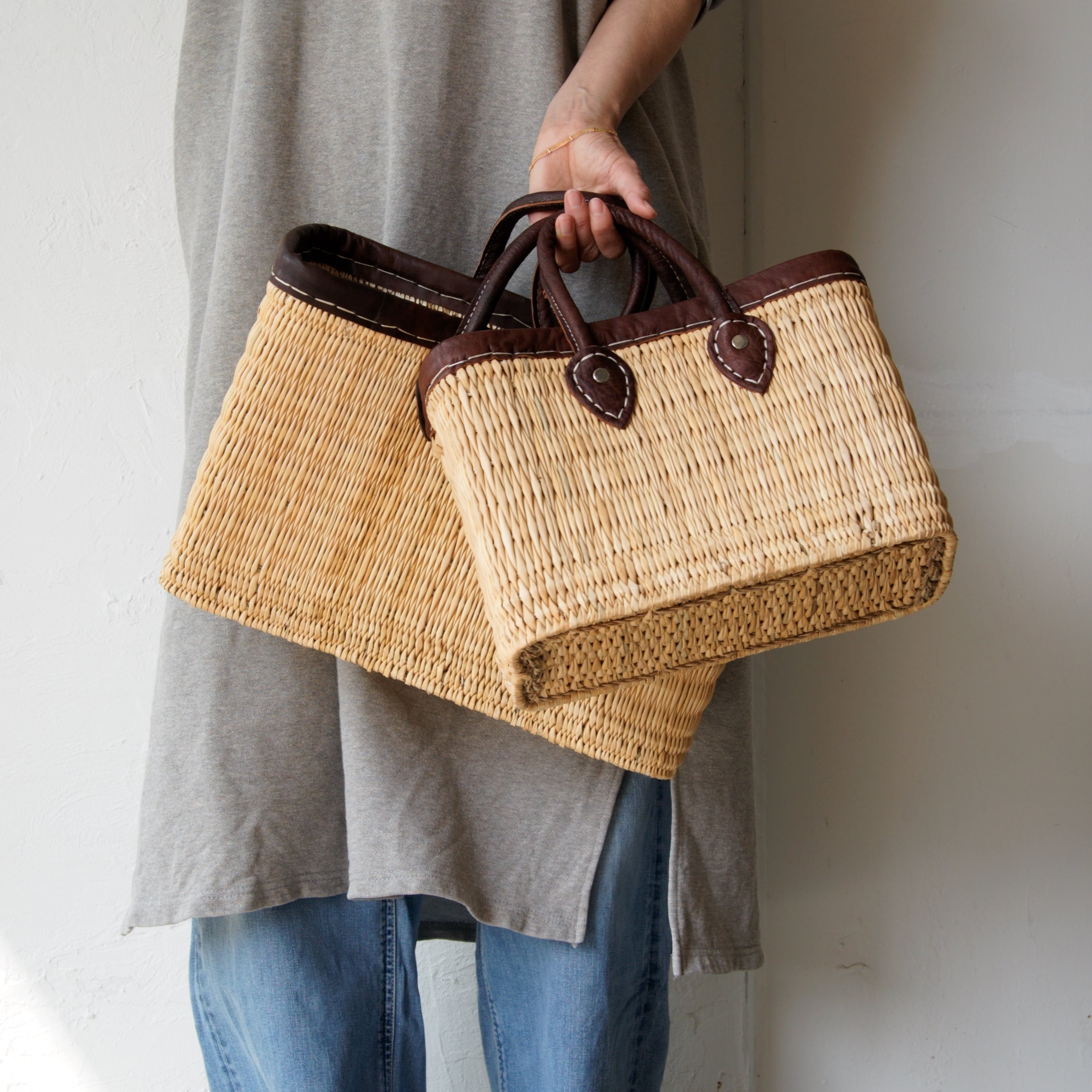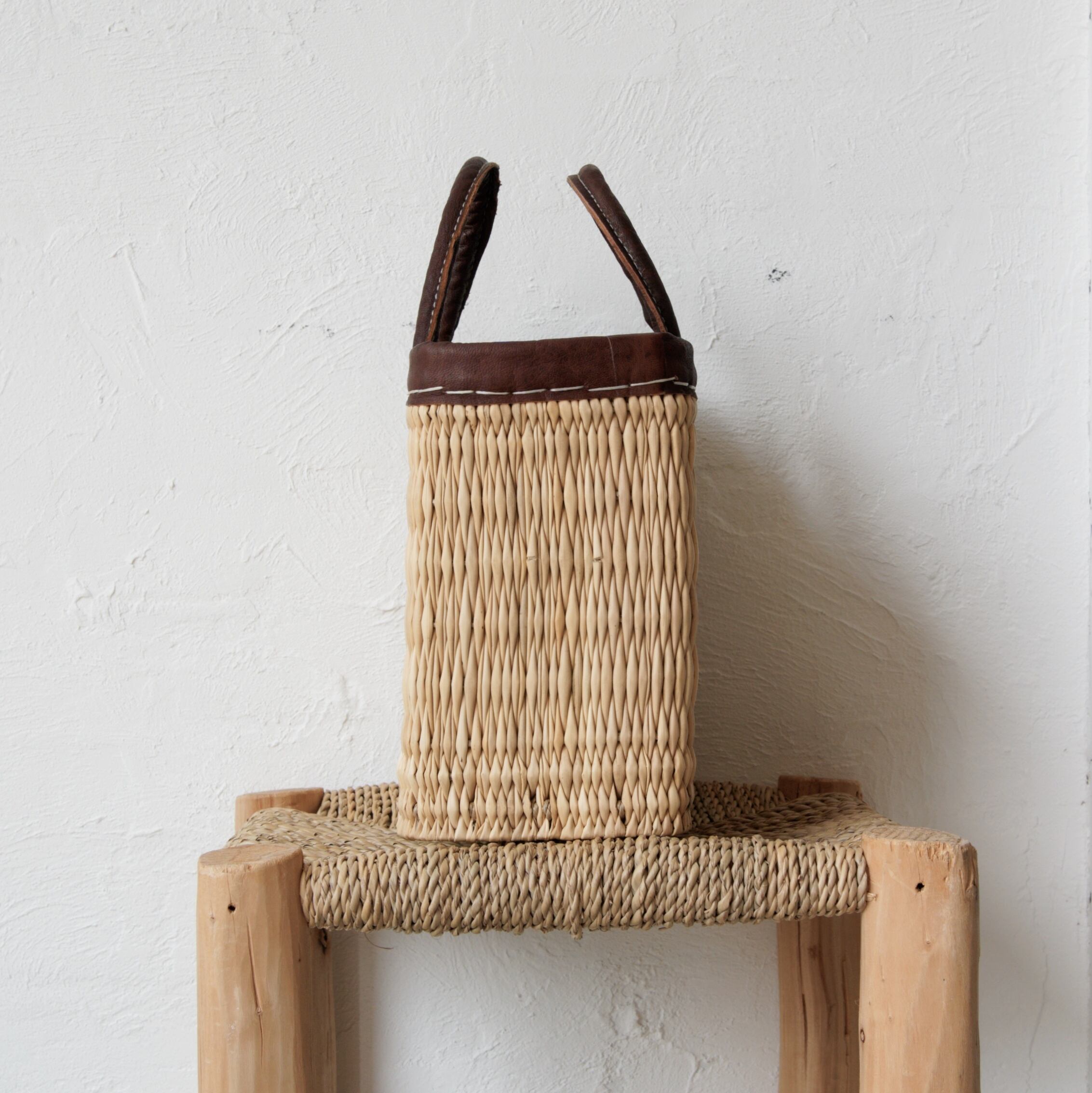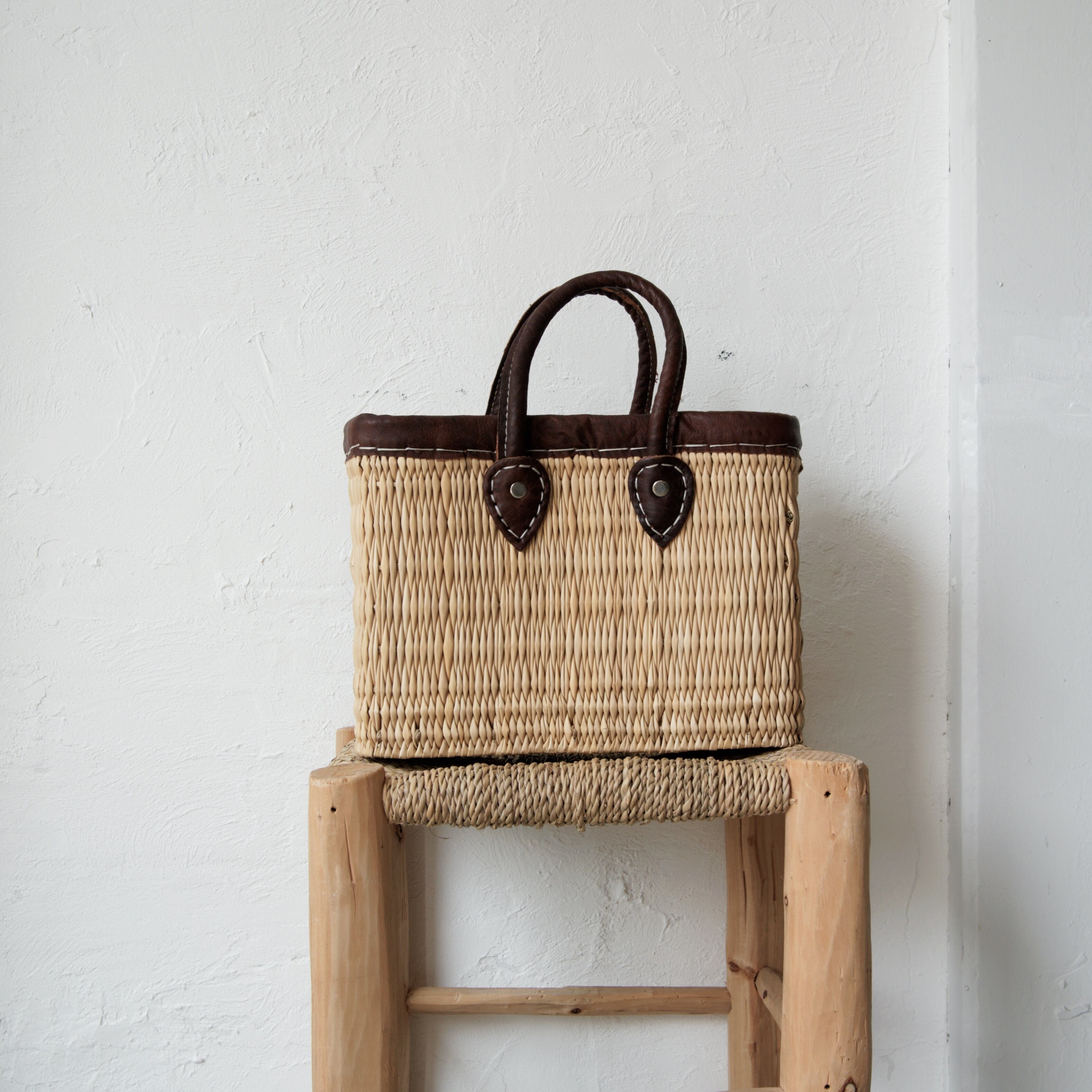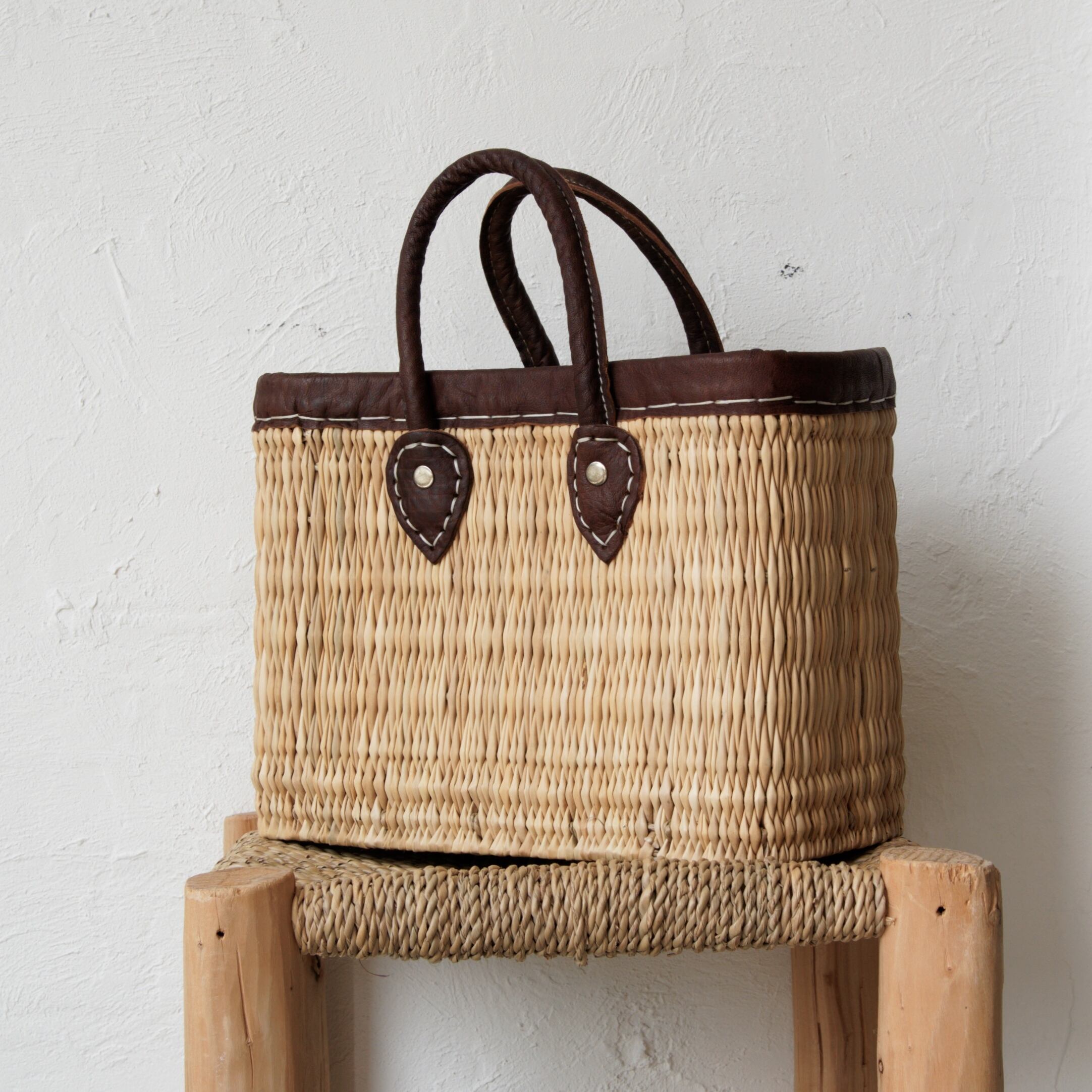 モロッコストローバスケット レザーハンドル S