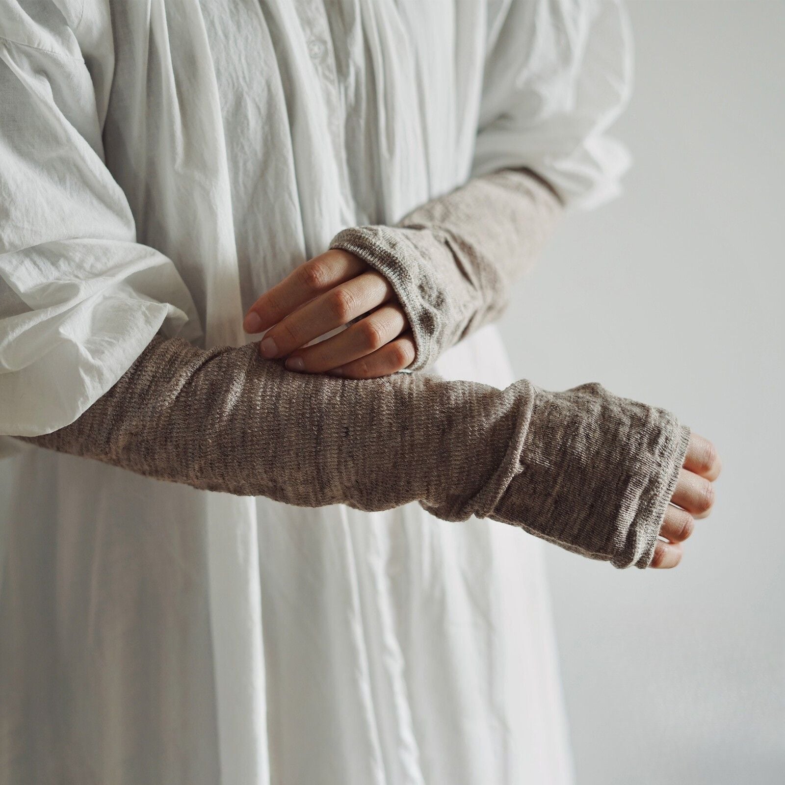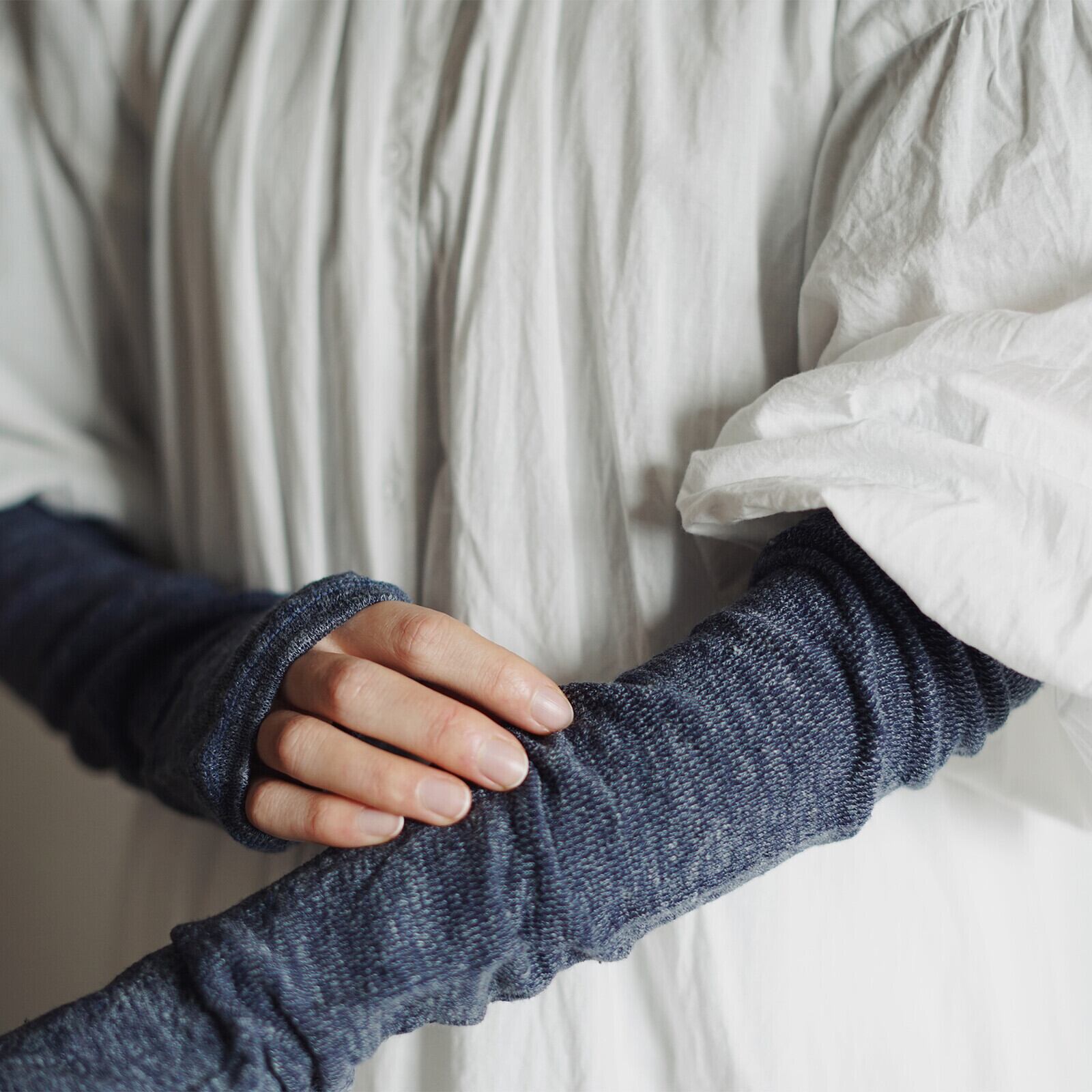 シャリ感と通気性が強いリネンを使用したアームカバー。