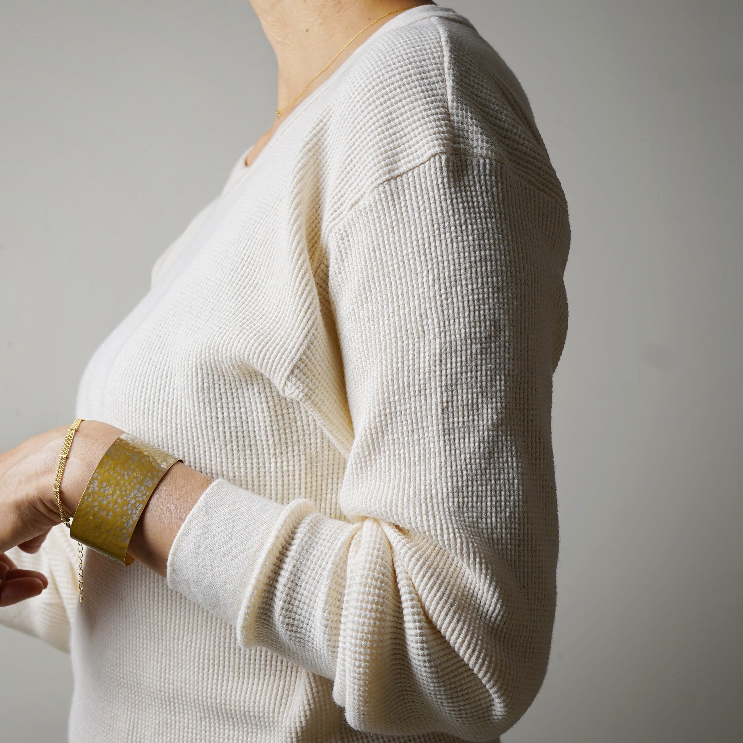 ブランドのロングセラーアイテムであるオーガニックコットン・サーマル・ブランケットのワッフル生地を使用した、日本代理店別注のサーマル・ロングスリーブ・Tシャツ。さらっとしたタッチでありながら温もりを感じ、包み込まれるような着心地が特徴です。