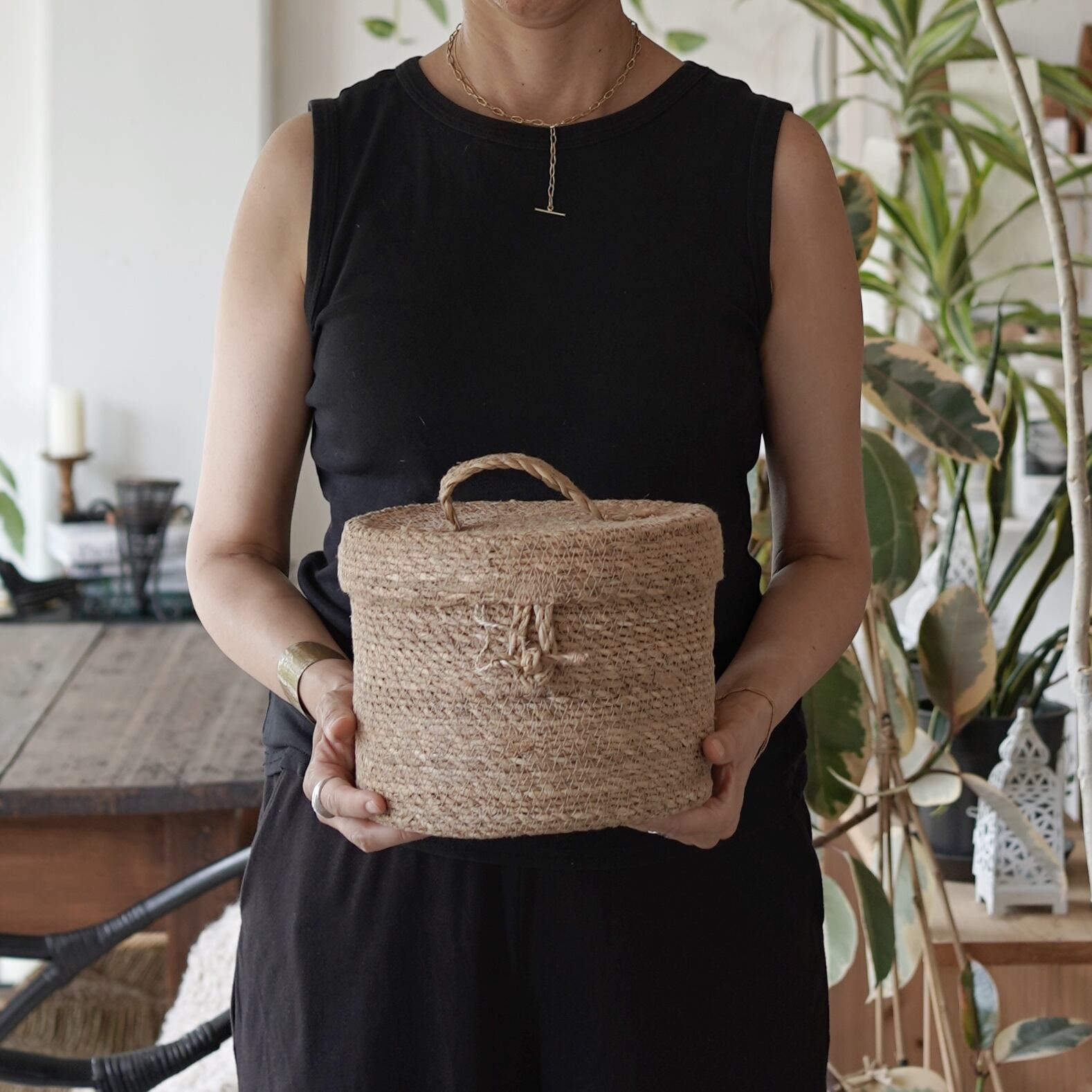 リビングやアトリエの収納かごとしても絵になります。
