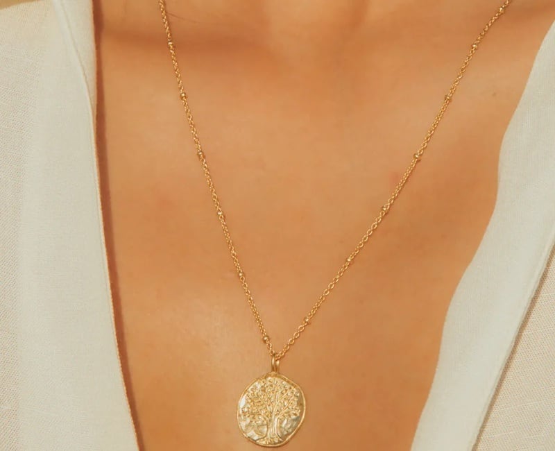 光を受けるたびに、やわらかく表情を変える〈Gaya Necklace〉は、穏やかな存在感で日々の装いを包み込みます。