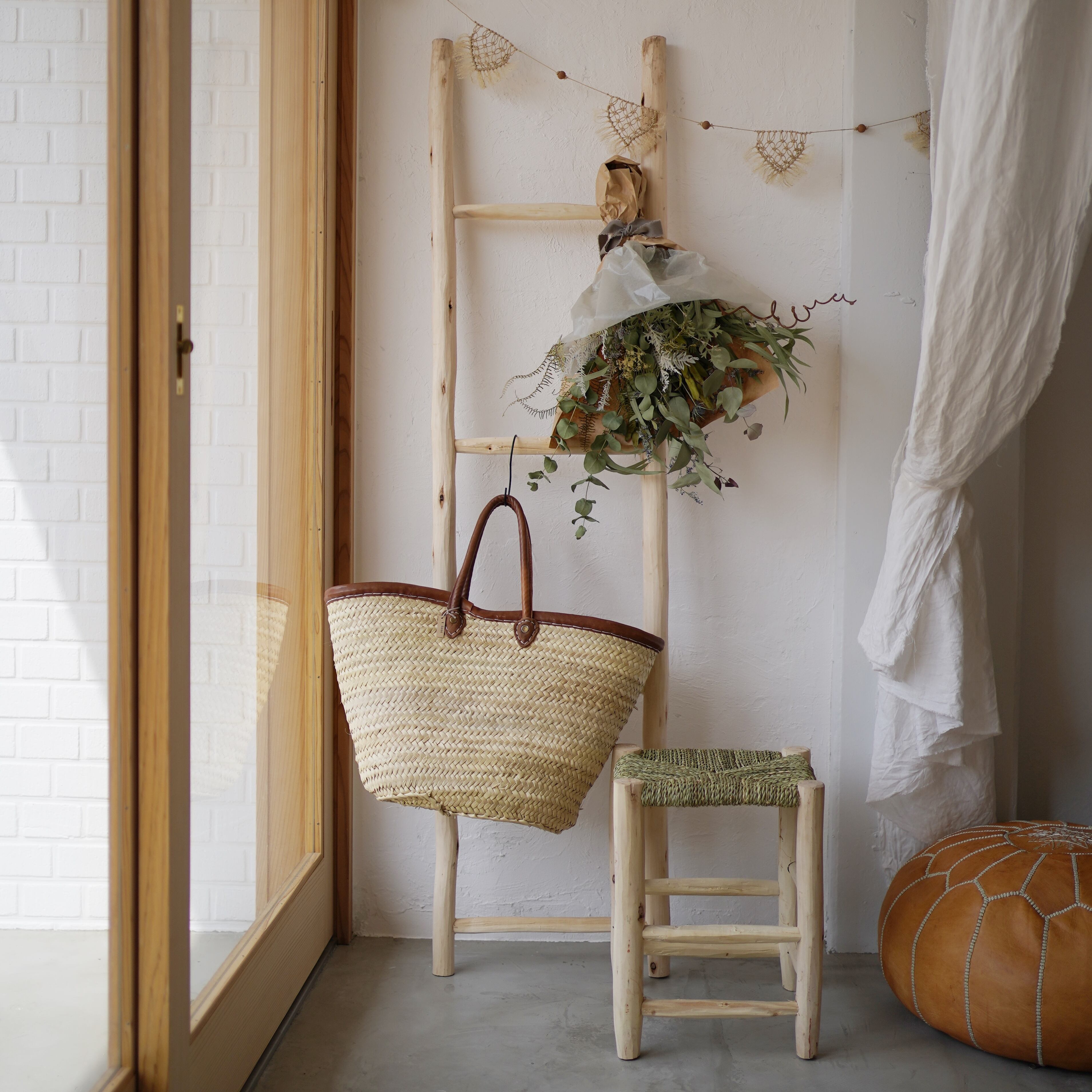 立てかけてドライフラワーを飾ったり、帽子やバッグをかけたり、インテリアの幅がひろがります。
