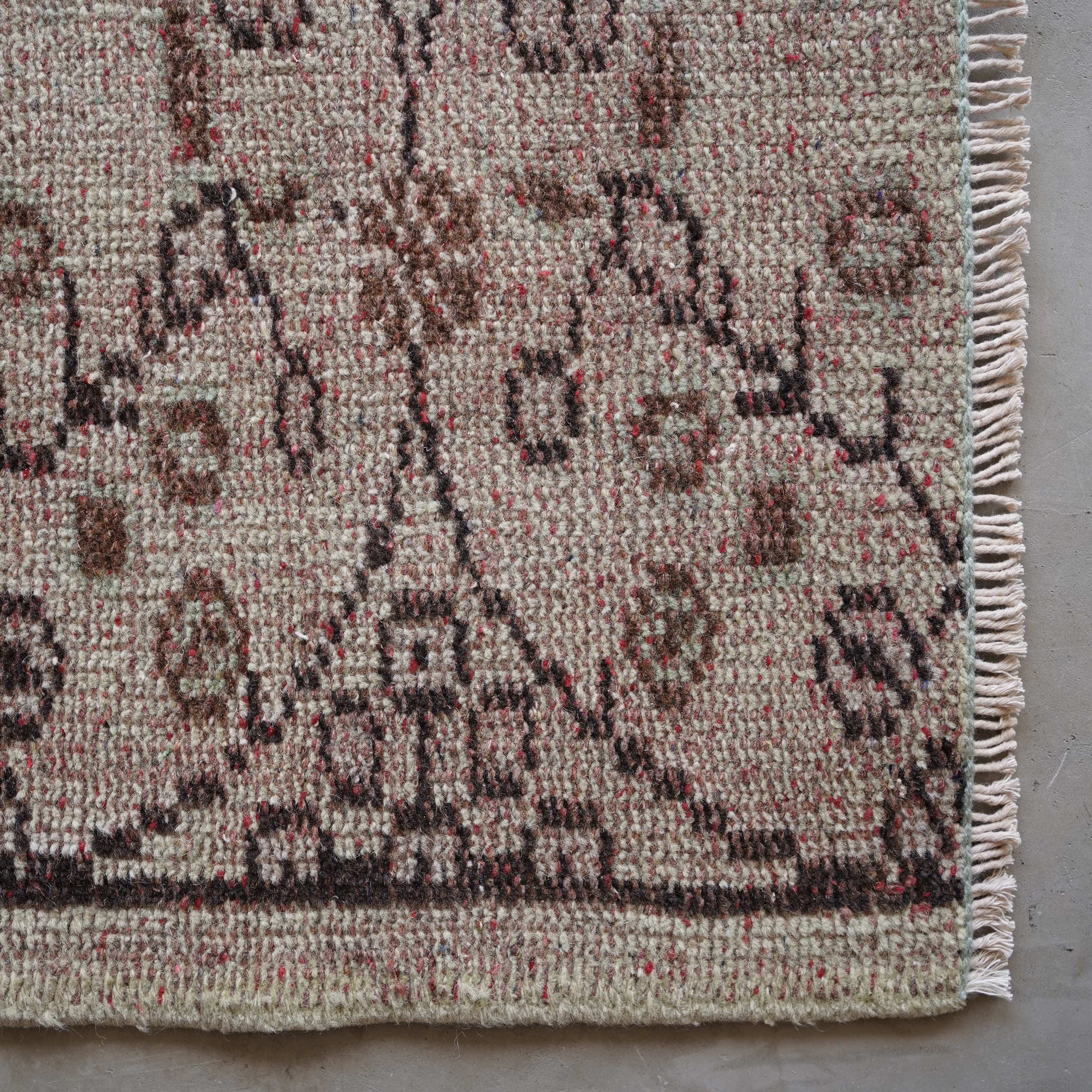 一見シンプルだけど、実はユニークな糸使いが施されていることで、より色味に個性が感じられるラグに仕上げられています。