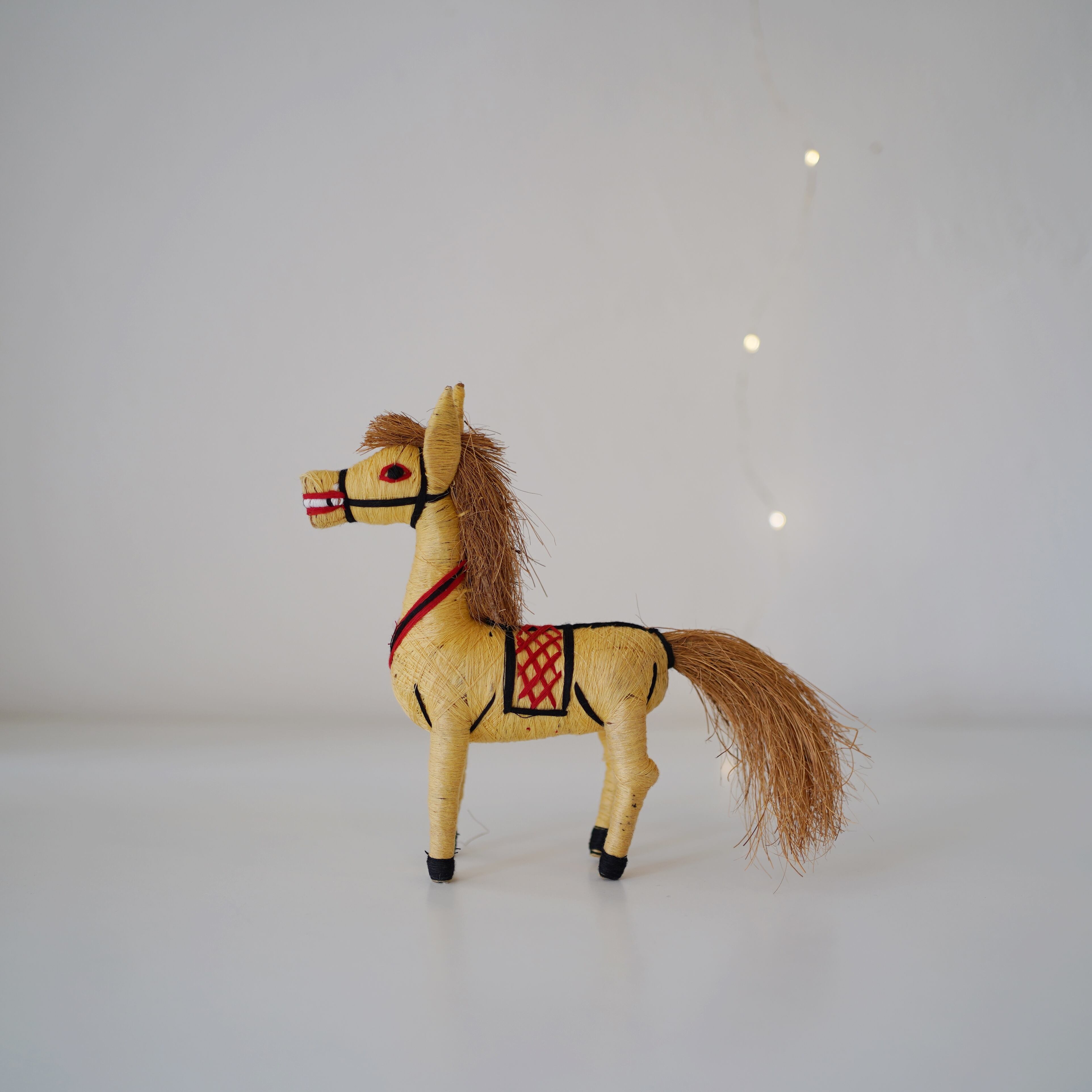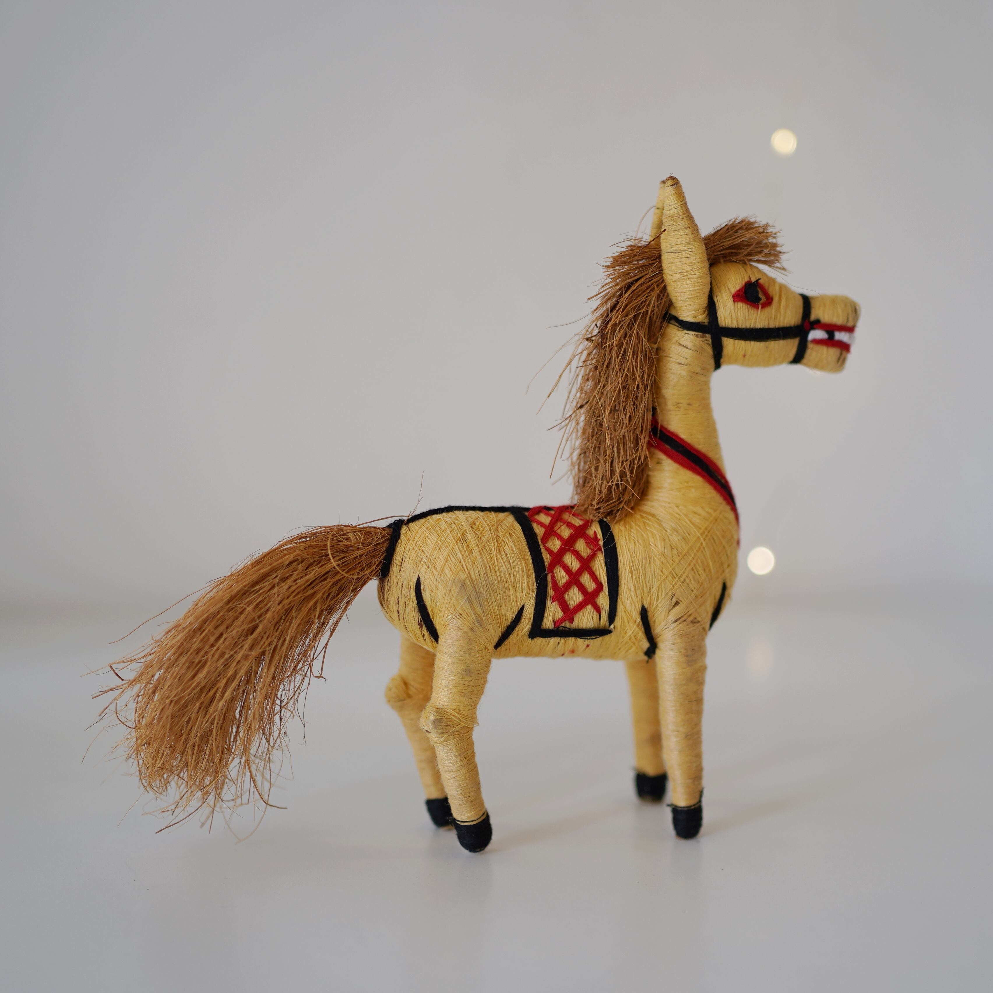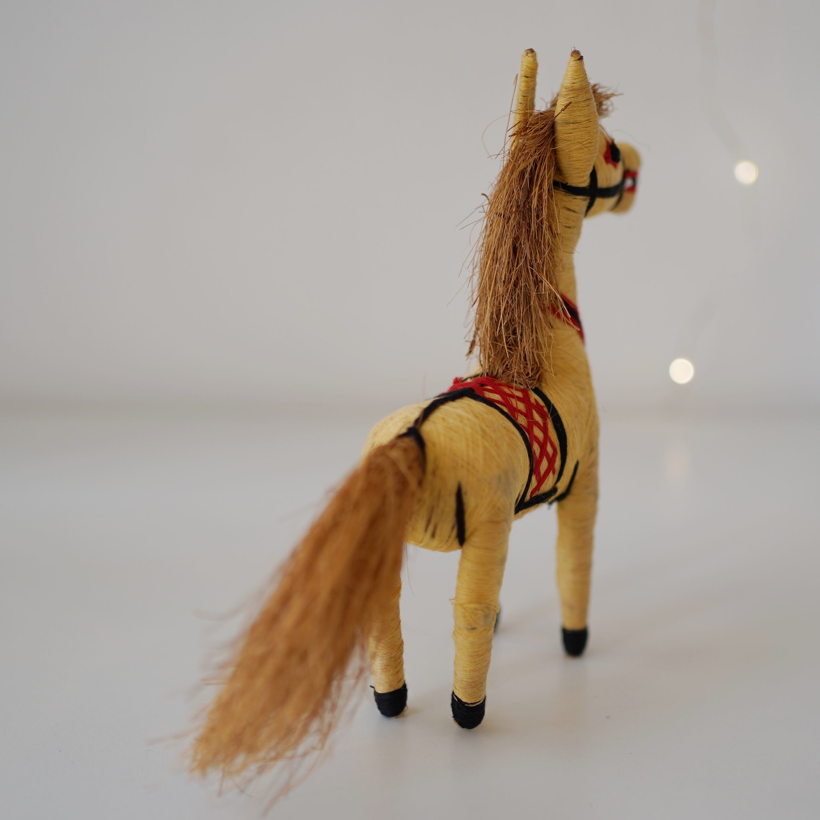 細く緻密なココナッツファイバーを使い、一頭ずつハンドメイドした馬の置物です。