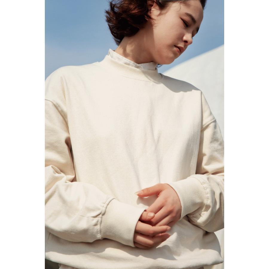 166cmのスタッフは通常Lサイズですが、こちらのスウェットシャツはMとLをボトムに合わせて着ています。