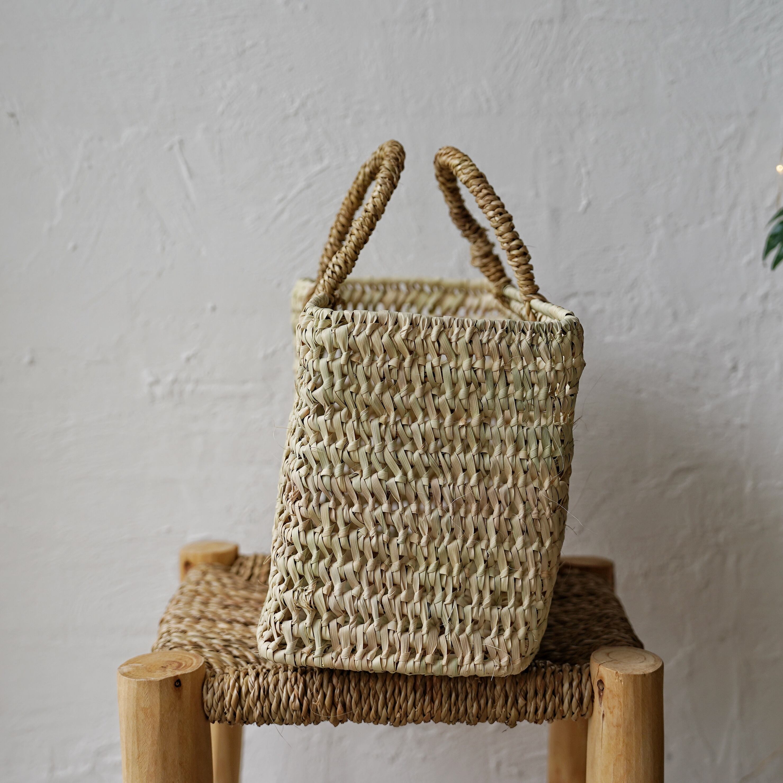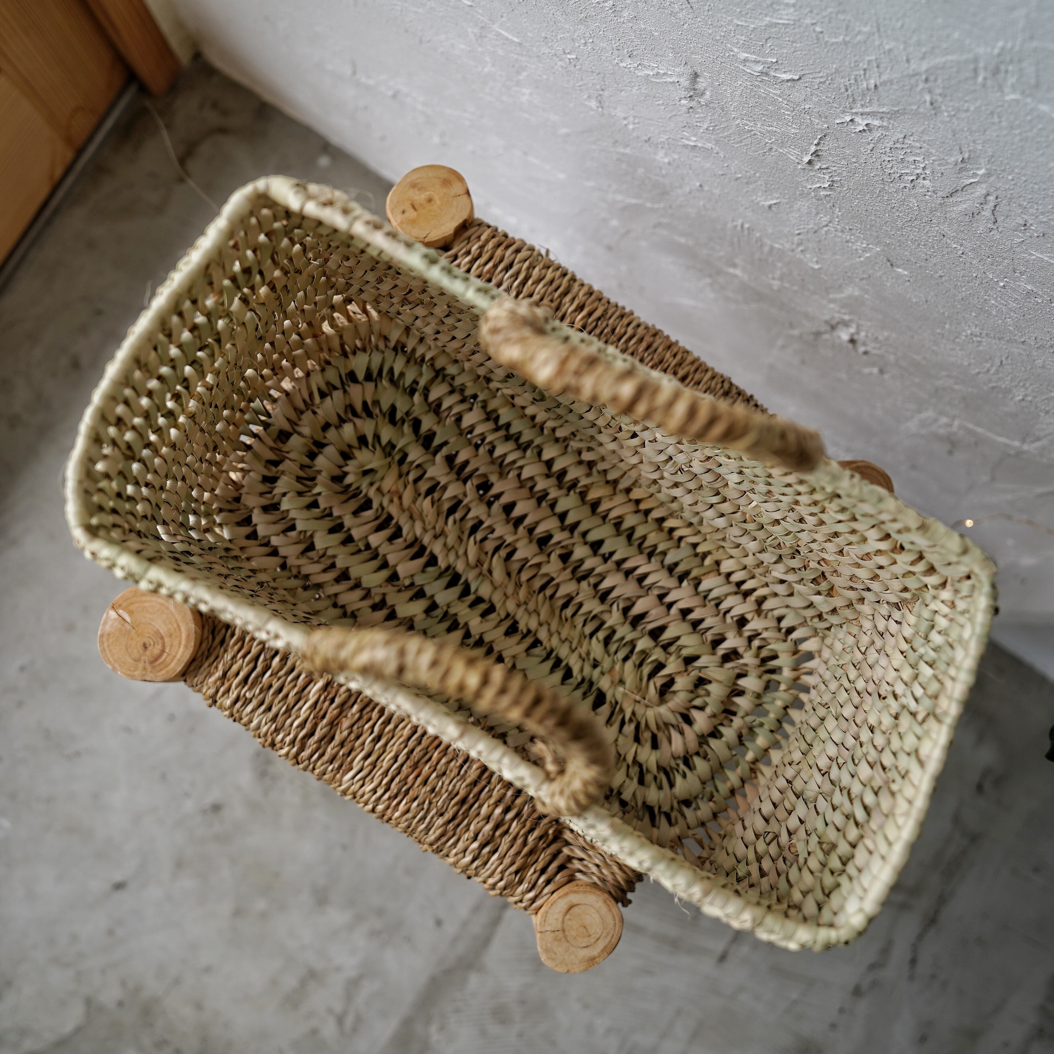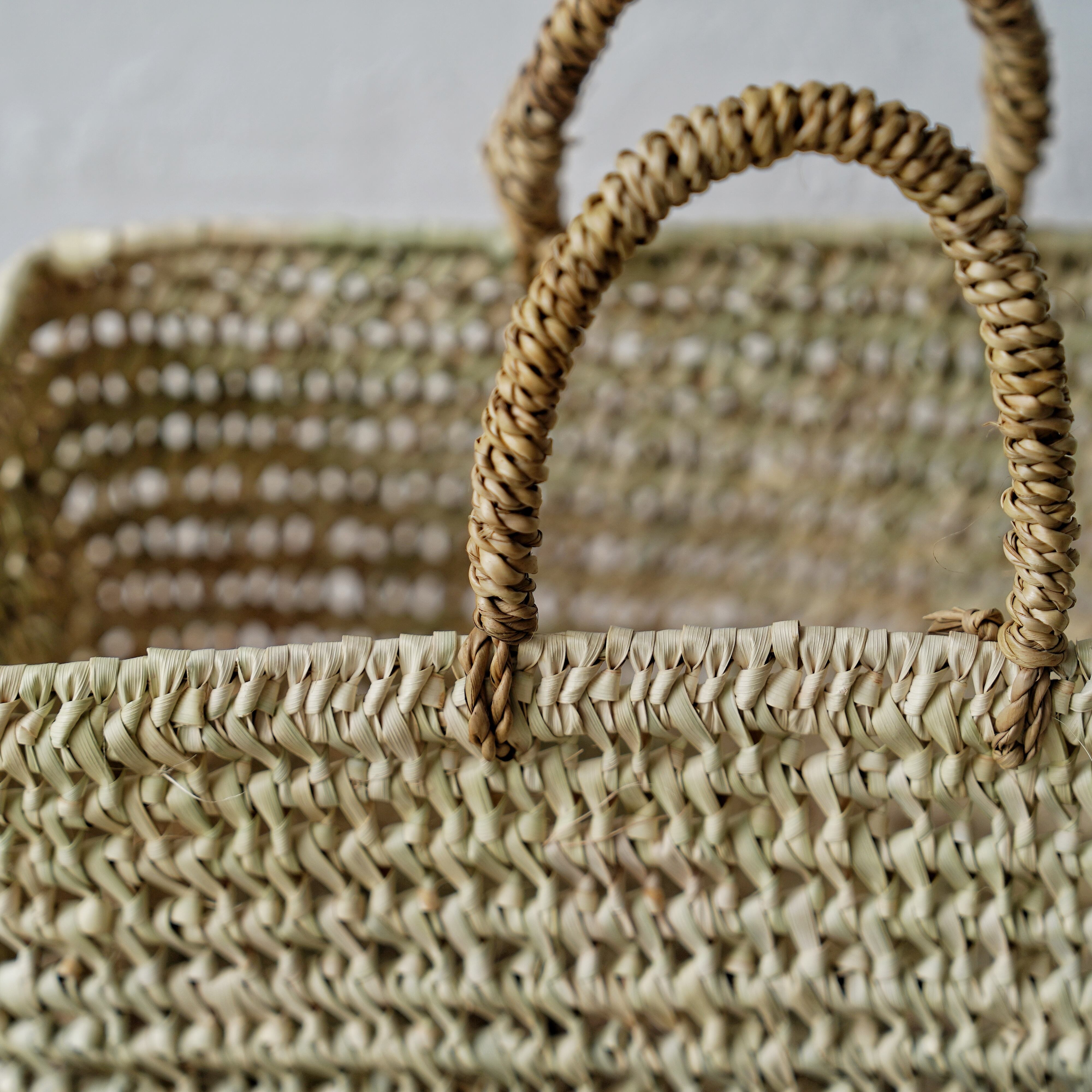 カゴ部分はパームヤシ、ハンドルがドーム(水草)で編み上げられた100%植物製のバスケット。