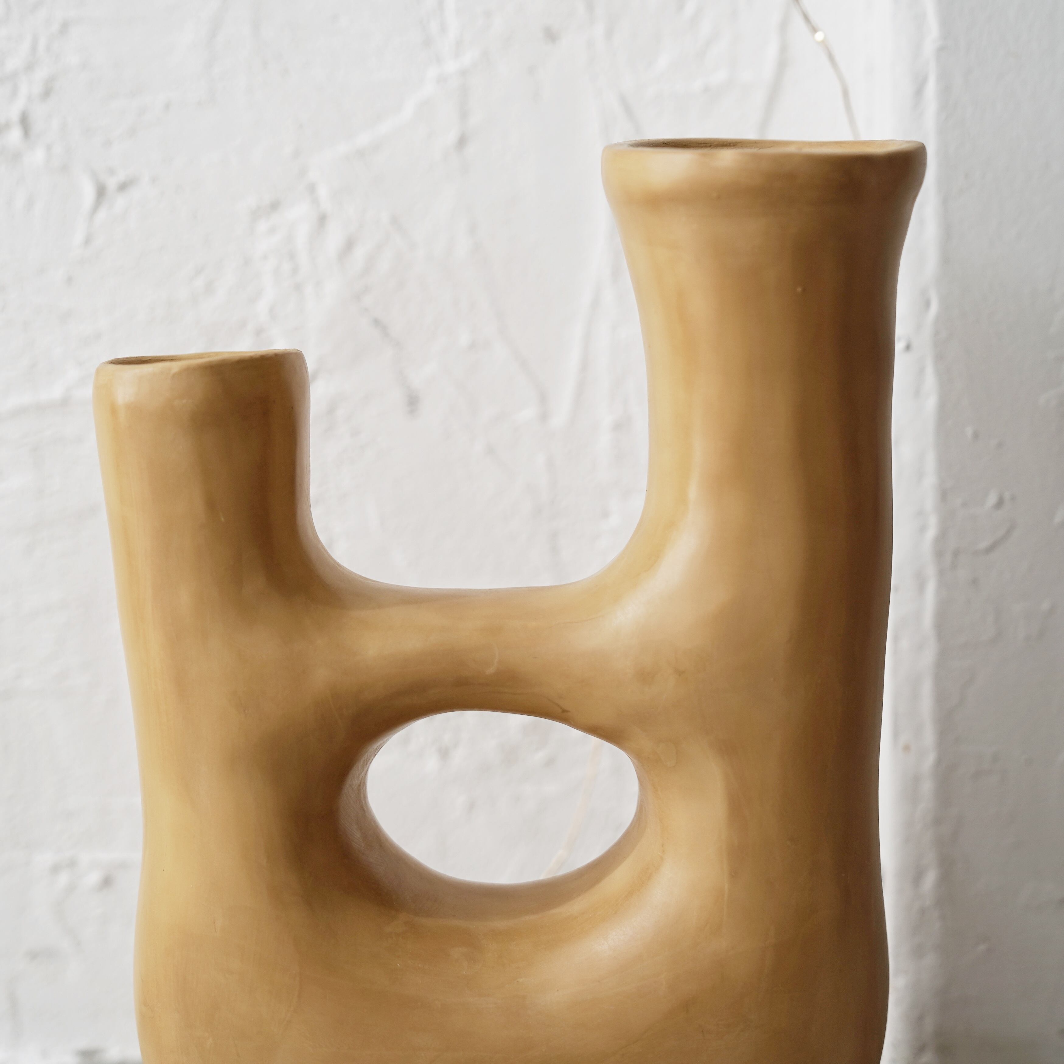 石膏でつくられたクラフト感たっぷりなフラワーベース。