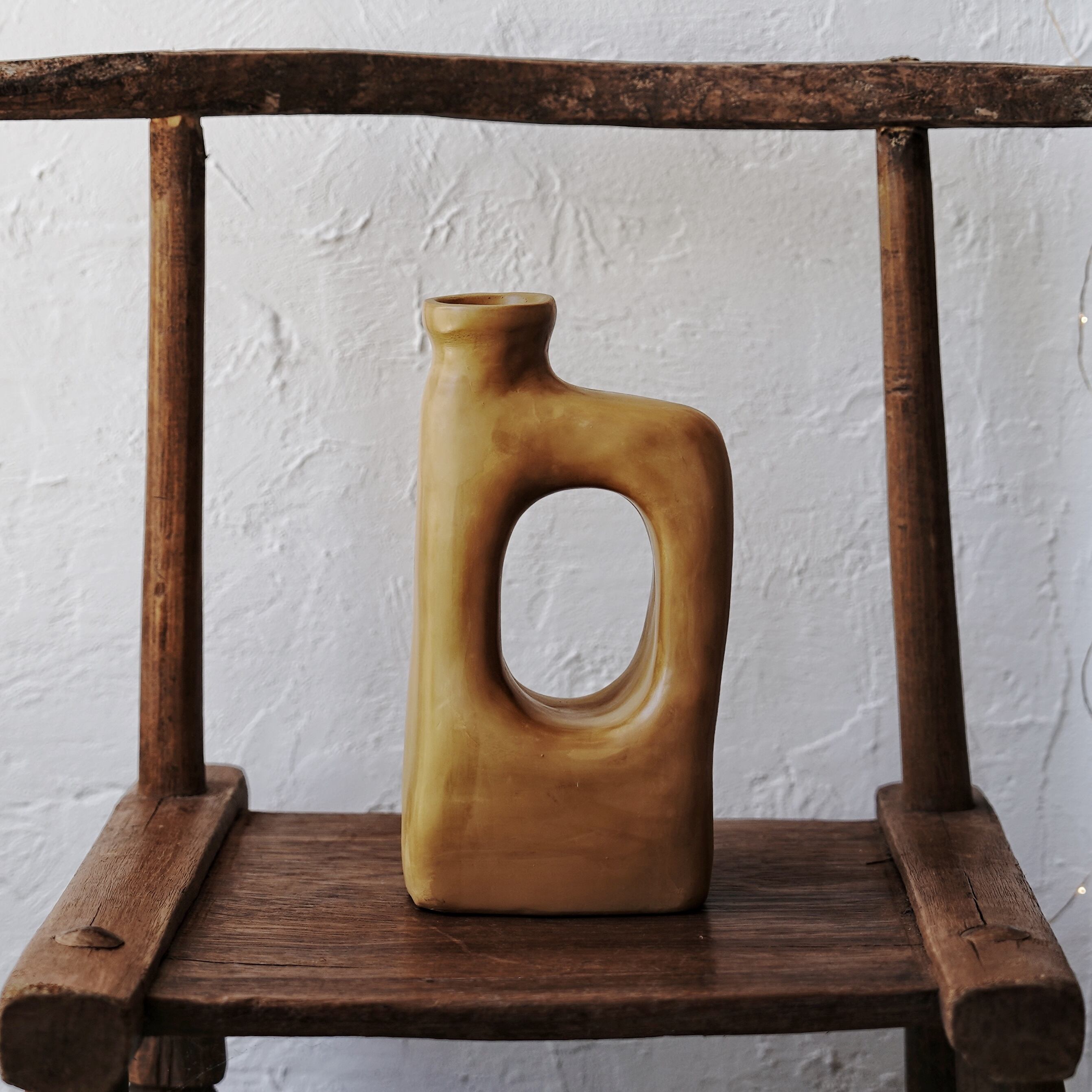 石膏でつくられたクラフト感たっぷりなフラワーベース。