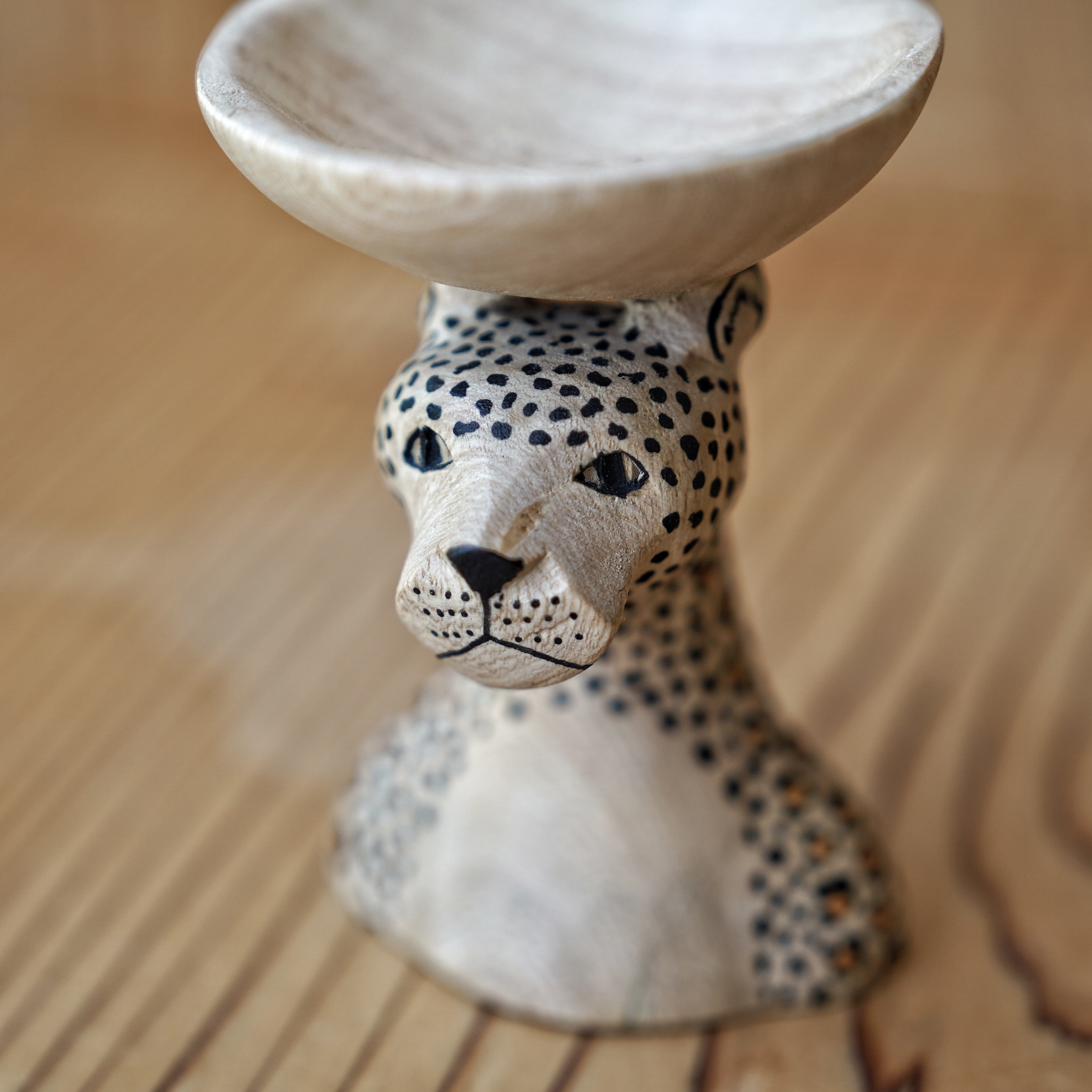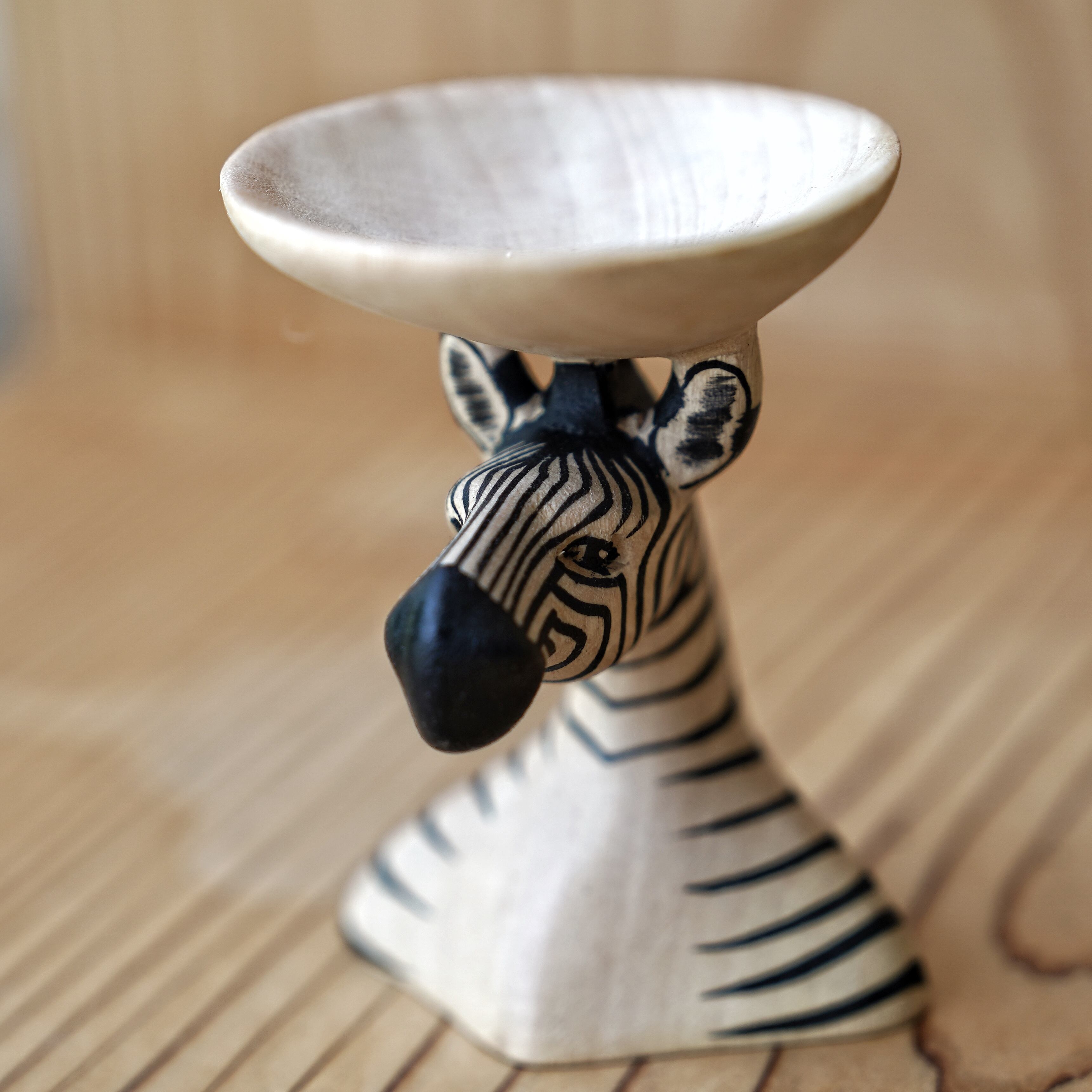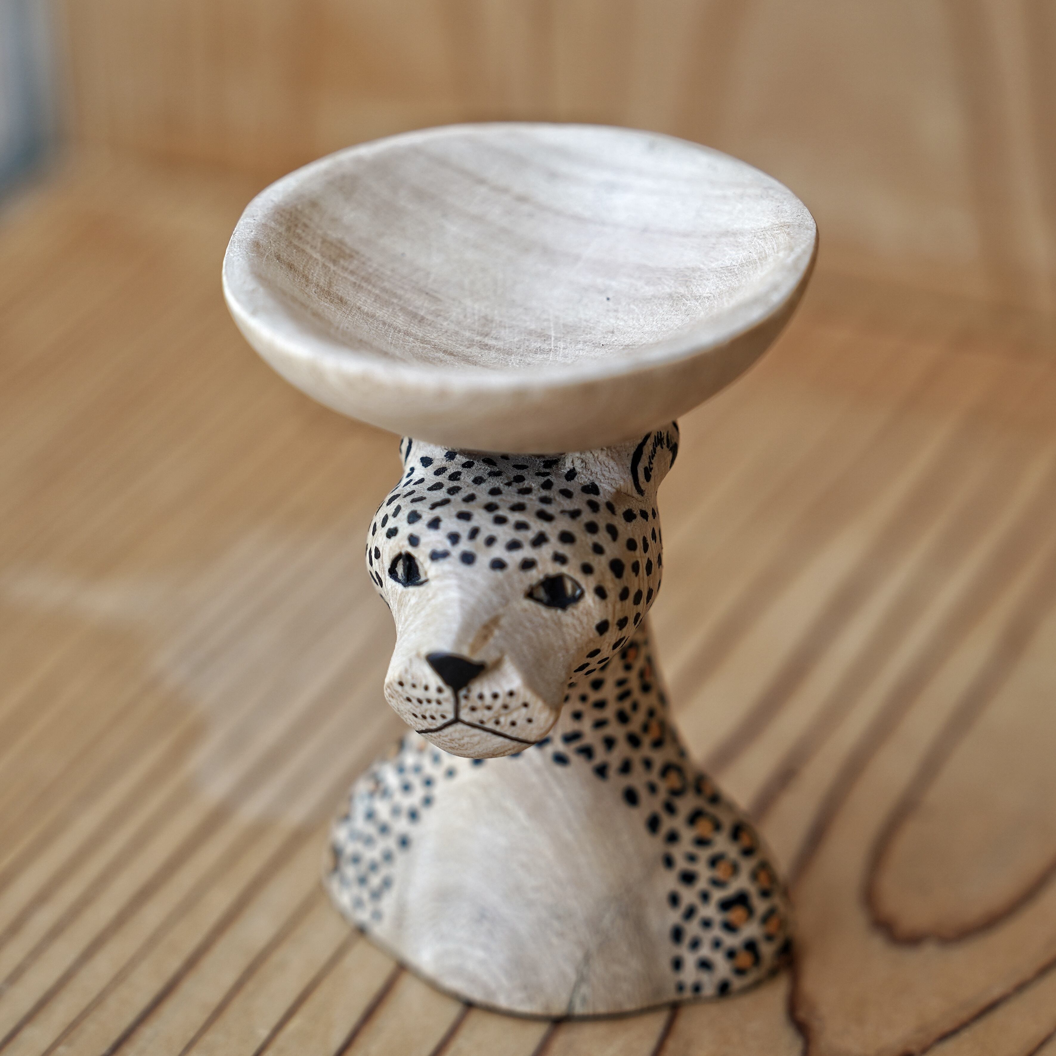 動物たちの頭にボウルを乗せた小皿タイプの木彫りのオブジェ。