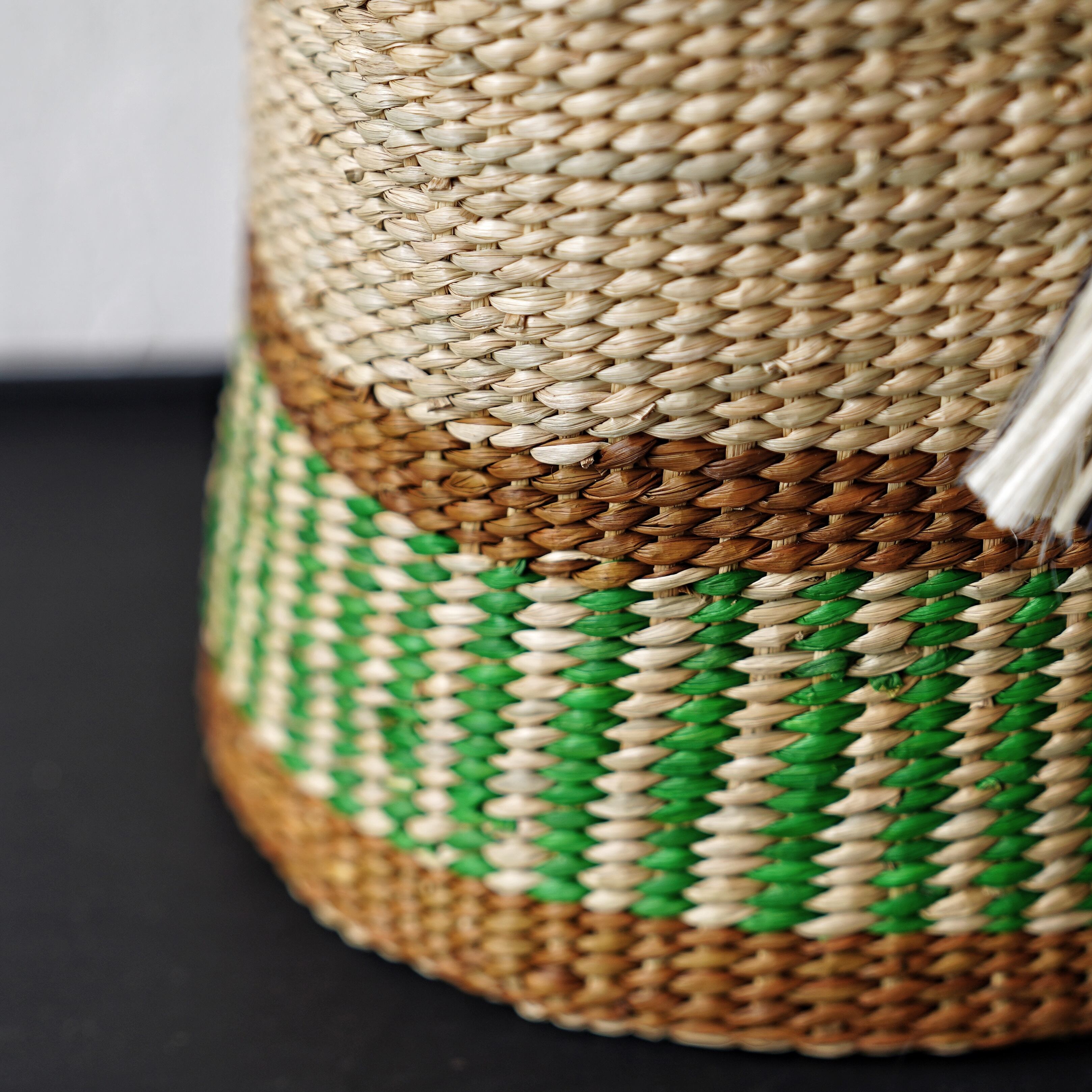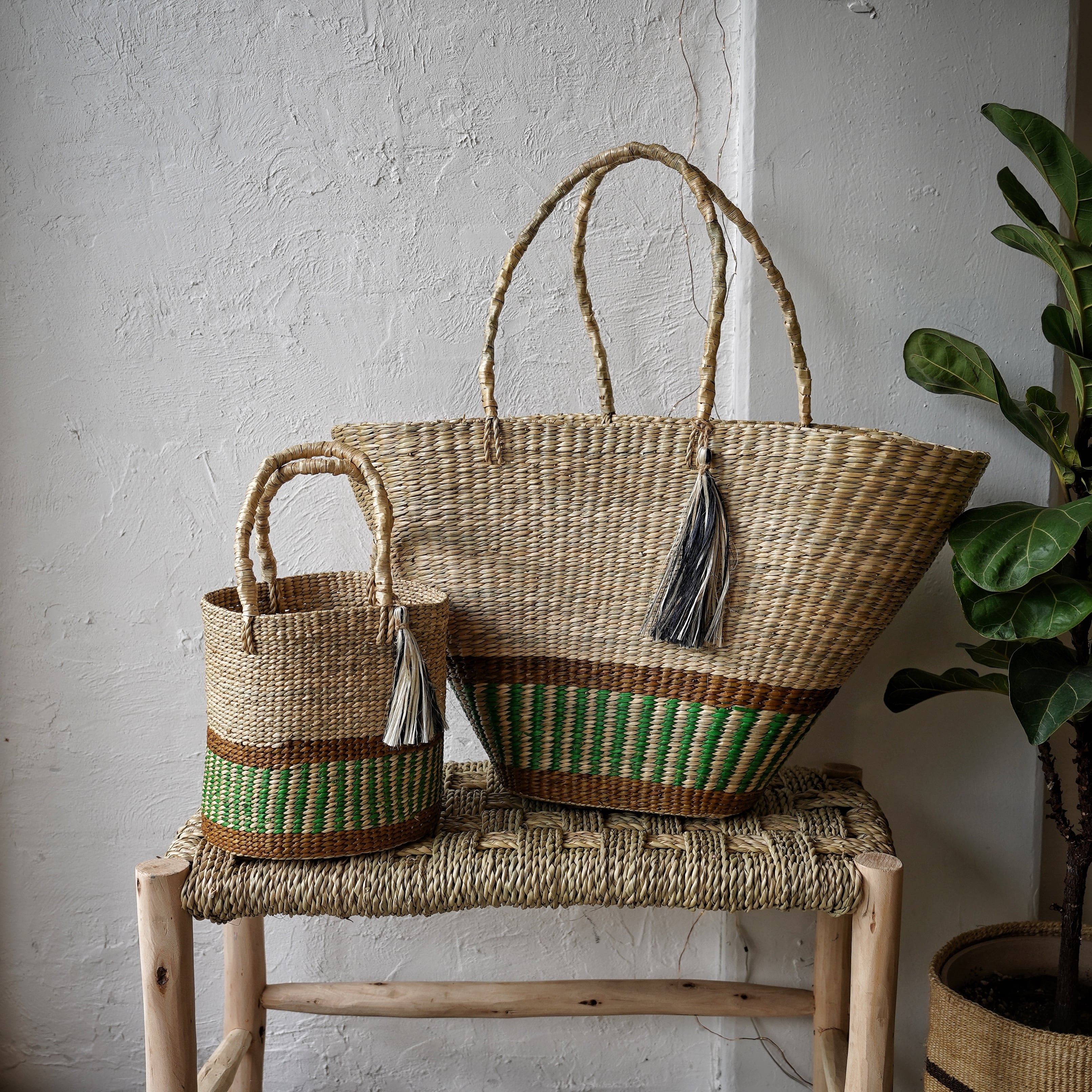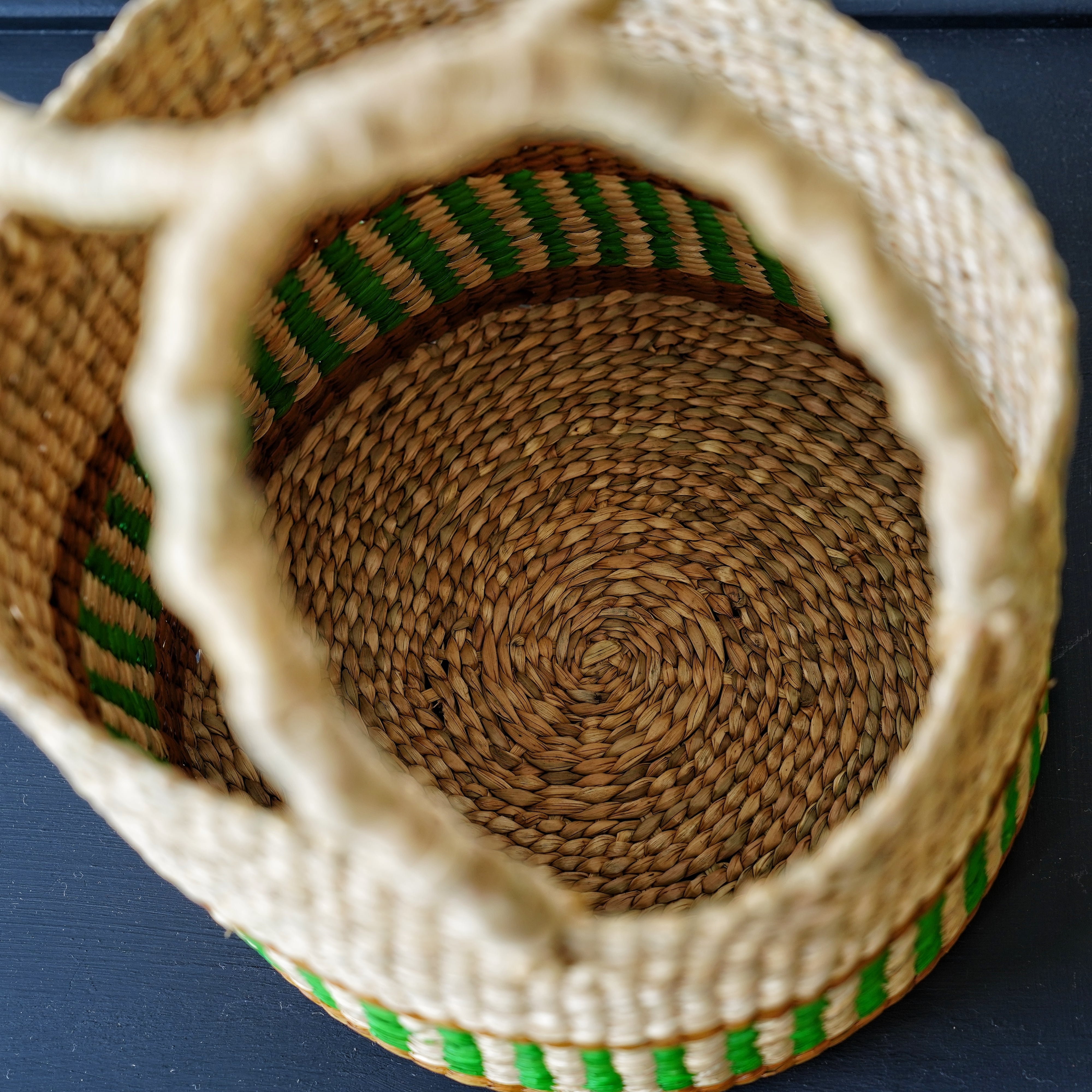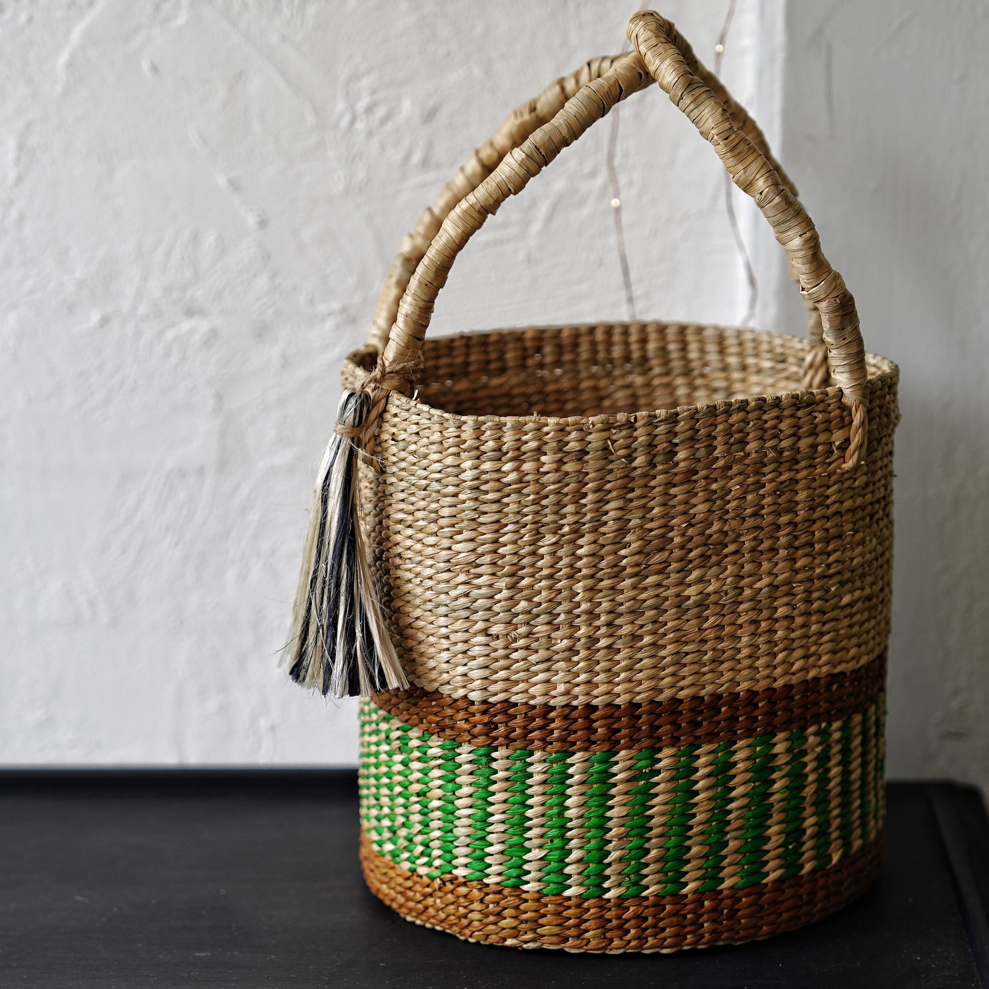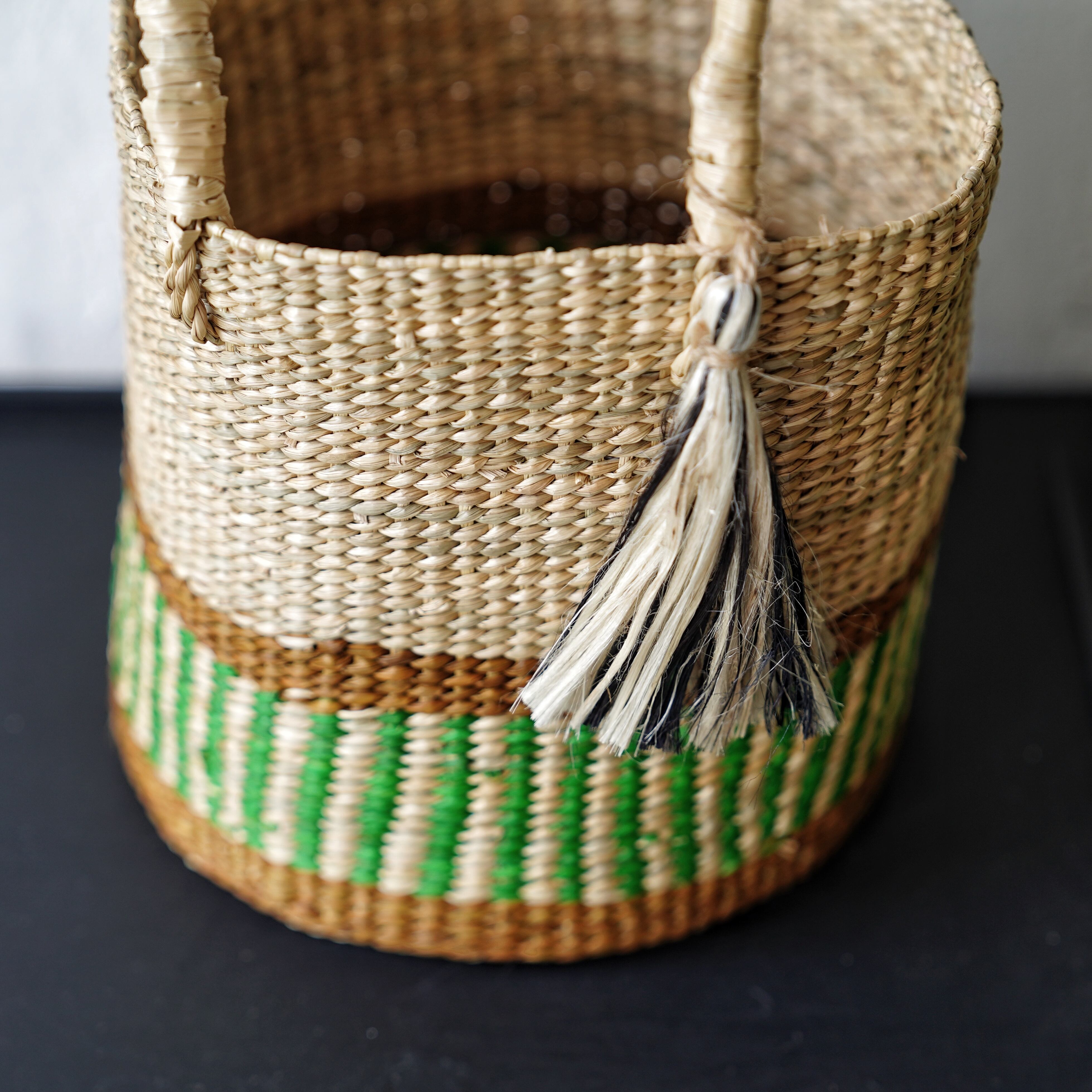 バングラデシュの湿地帯に自生するパティ草で手編みされた、しっかりとした丸底のかごバッグ。