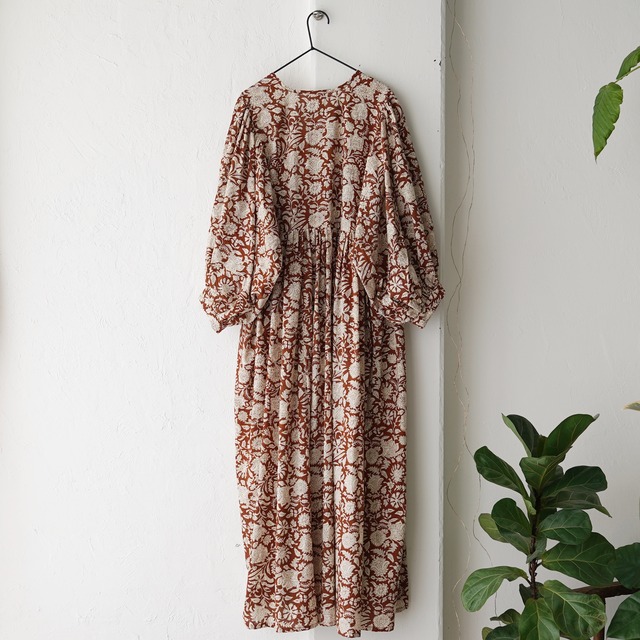 ハンドブロックプリントミディドレス