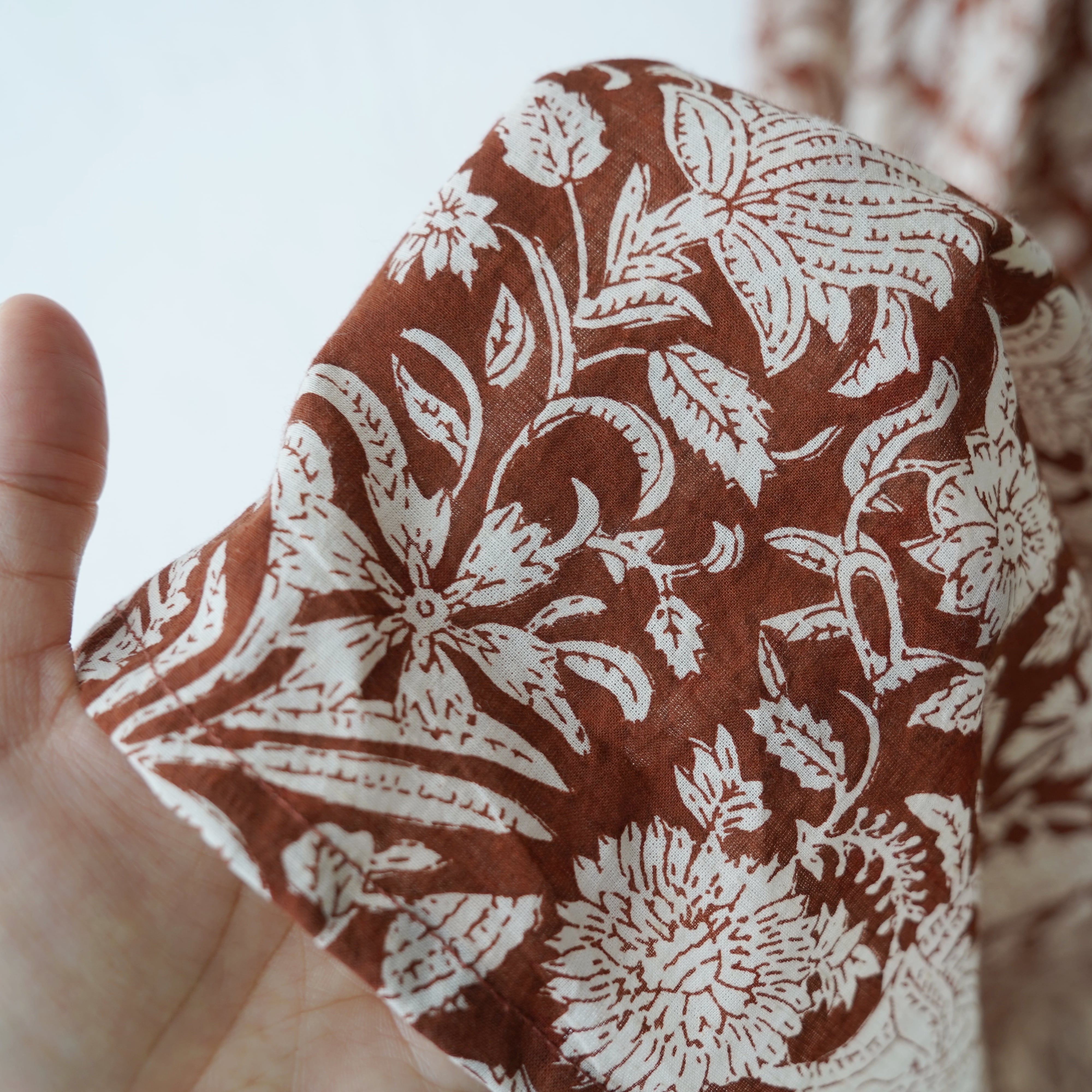 ・ハンドブロックプリントは色落ちしやすいので、他の衣類と分けて単独でお洗濯してください。