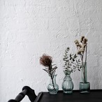 直径6cm・高さ10cmのコンパクトなサイズ感は、一輪挿しや少量のドライフラワーと相性抜群。ボトル部分に差し込む光がふんわりと抜けて、