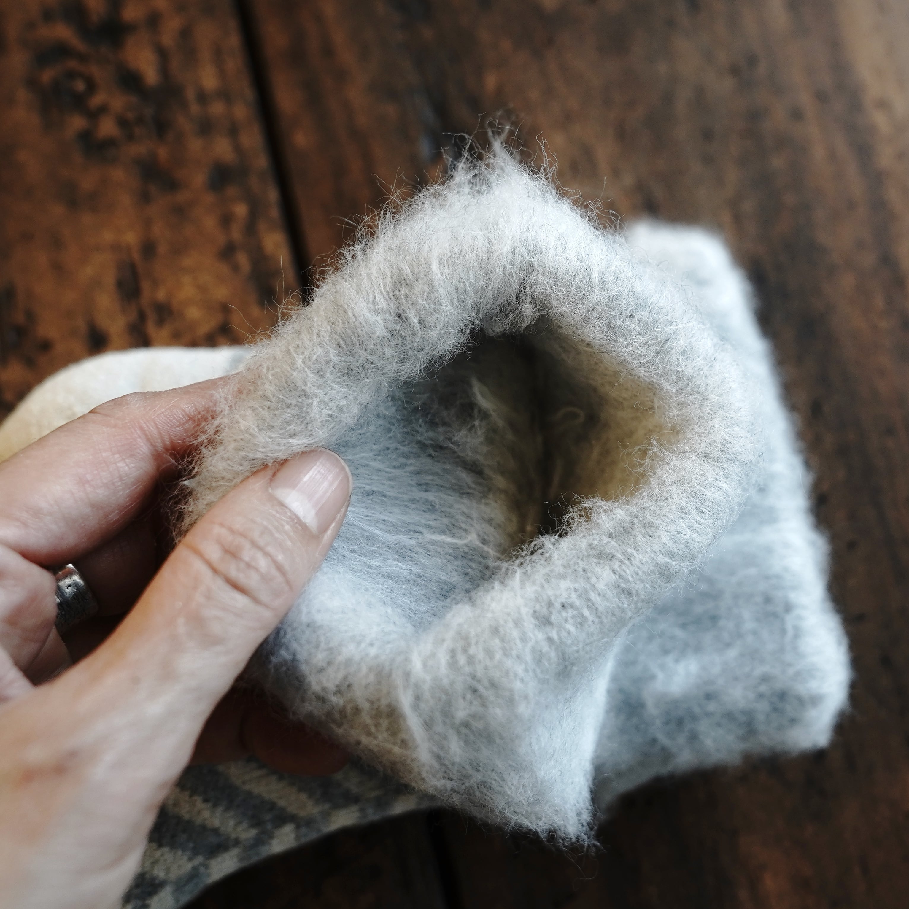 表はメリヤス編み、中間はパイル、内側は起毛の三層構造で、厚みがありながらも蒸れにくく、汗を吸収。ウールならではの天然消臭効果も、毎日履きたくなる理由のひとつです。