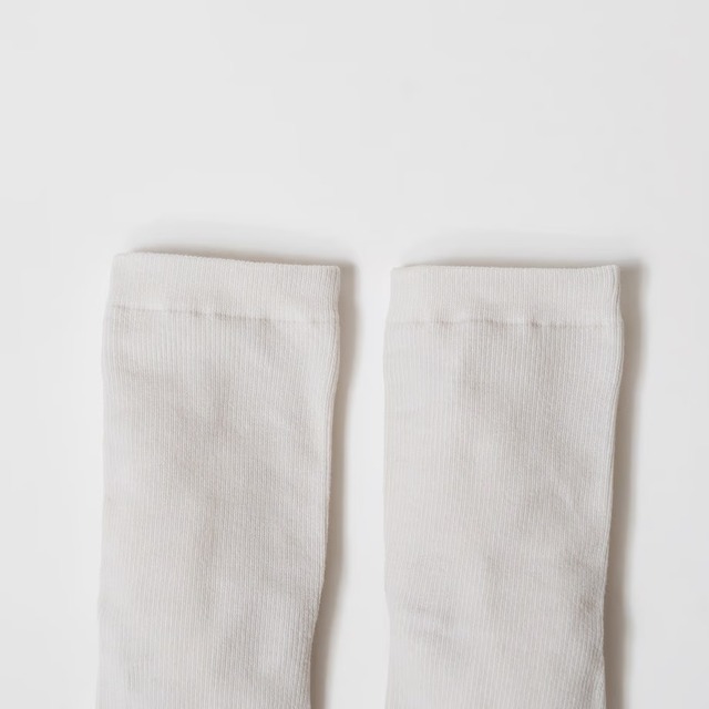 装飾やサイズ表記をなくしたシンプルなデザインで、繊細なリブ編みが際立つ一足です。