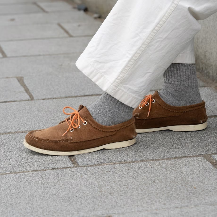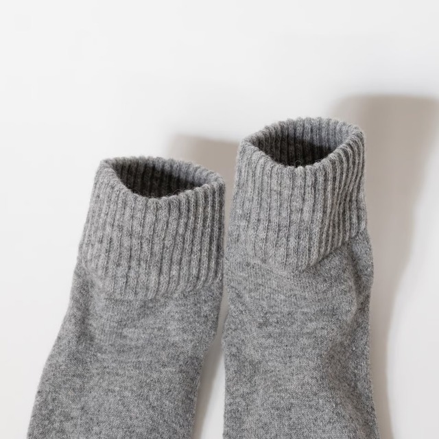 ヒラ編みになっているので様々なシューズに合わせやすく、丈も一般的なウールソックスに比べ短いので、裾幅の細いパンツにもおすすめです。