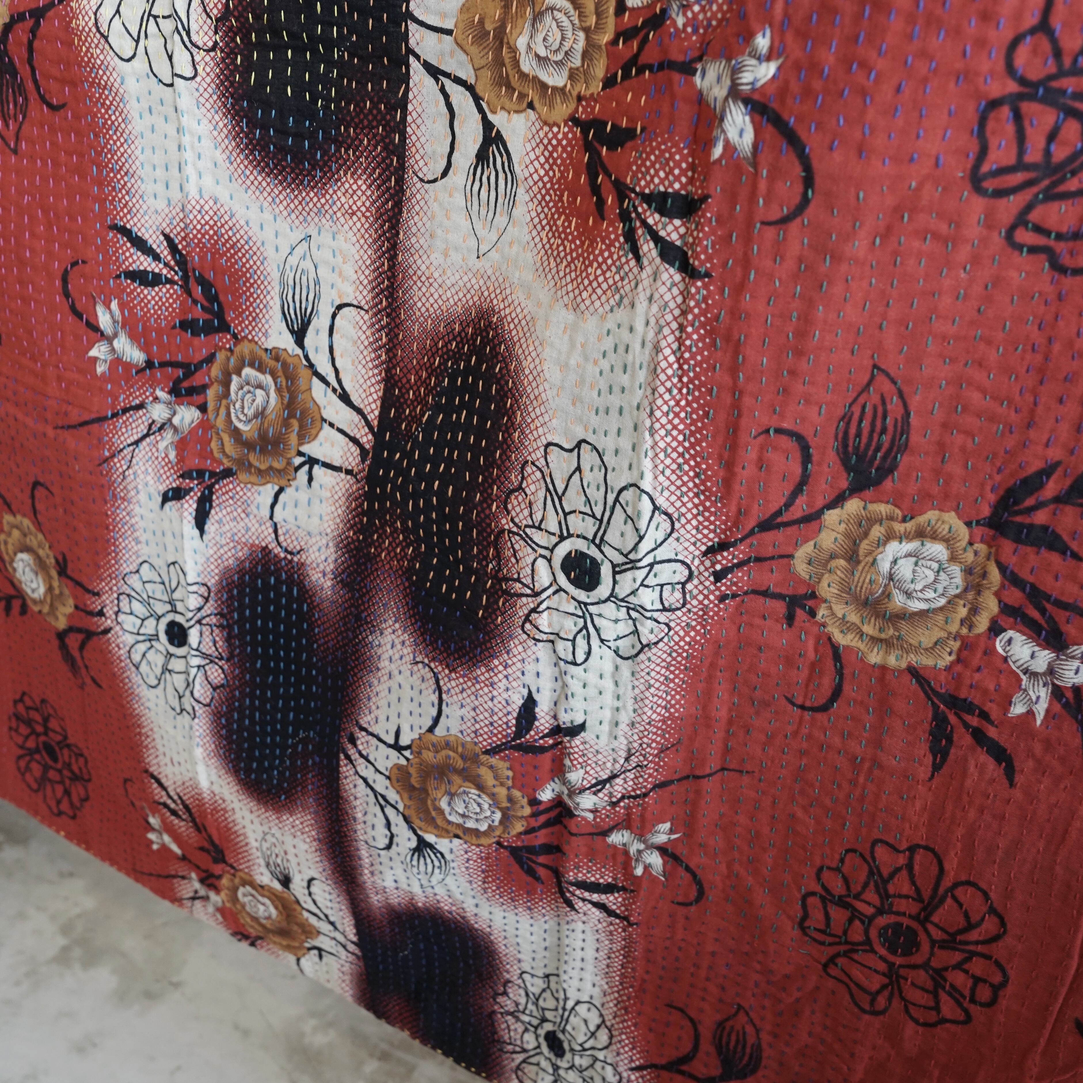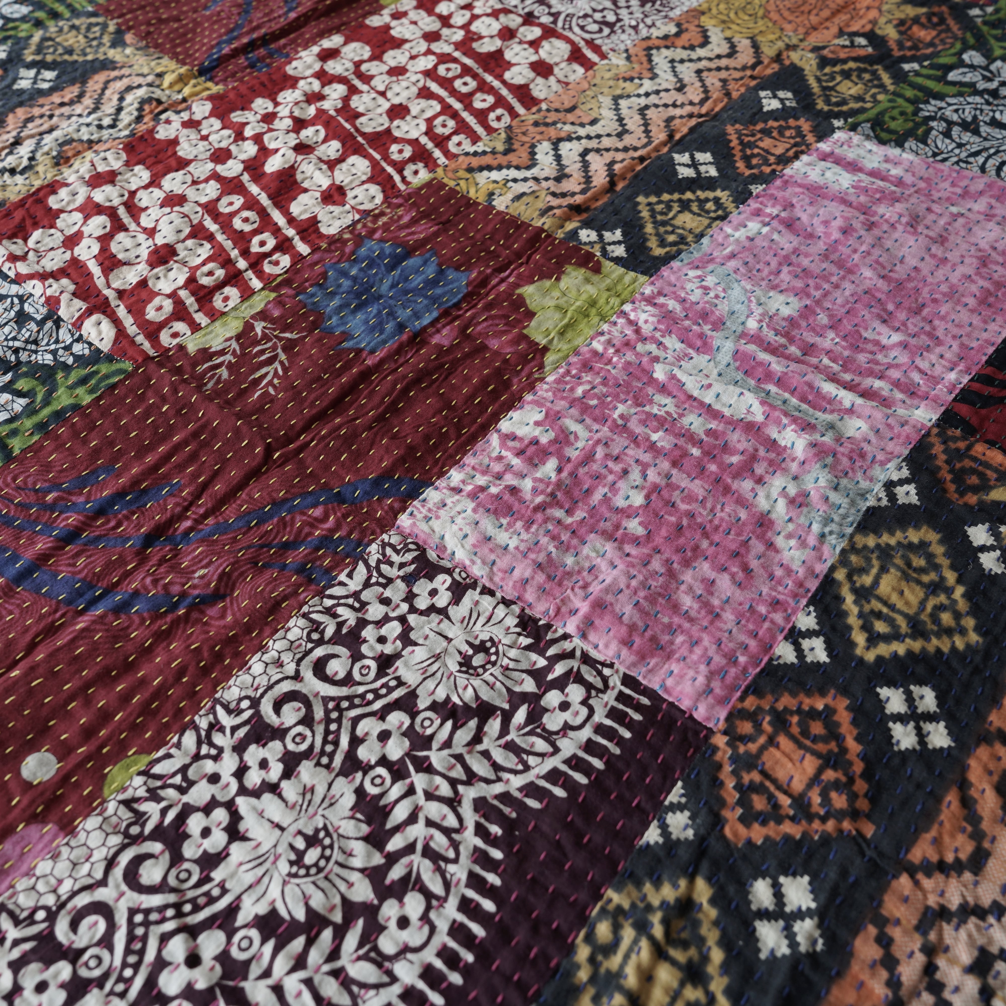 リサイクルサリーをランダムに使った、世界に1枚のパッチワーク調マルチカバー。